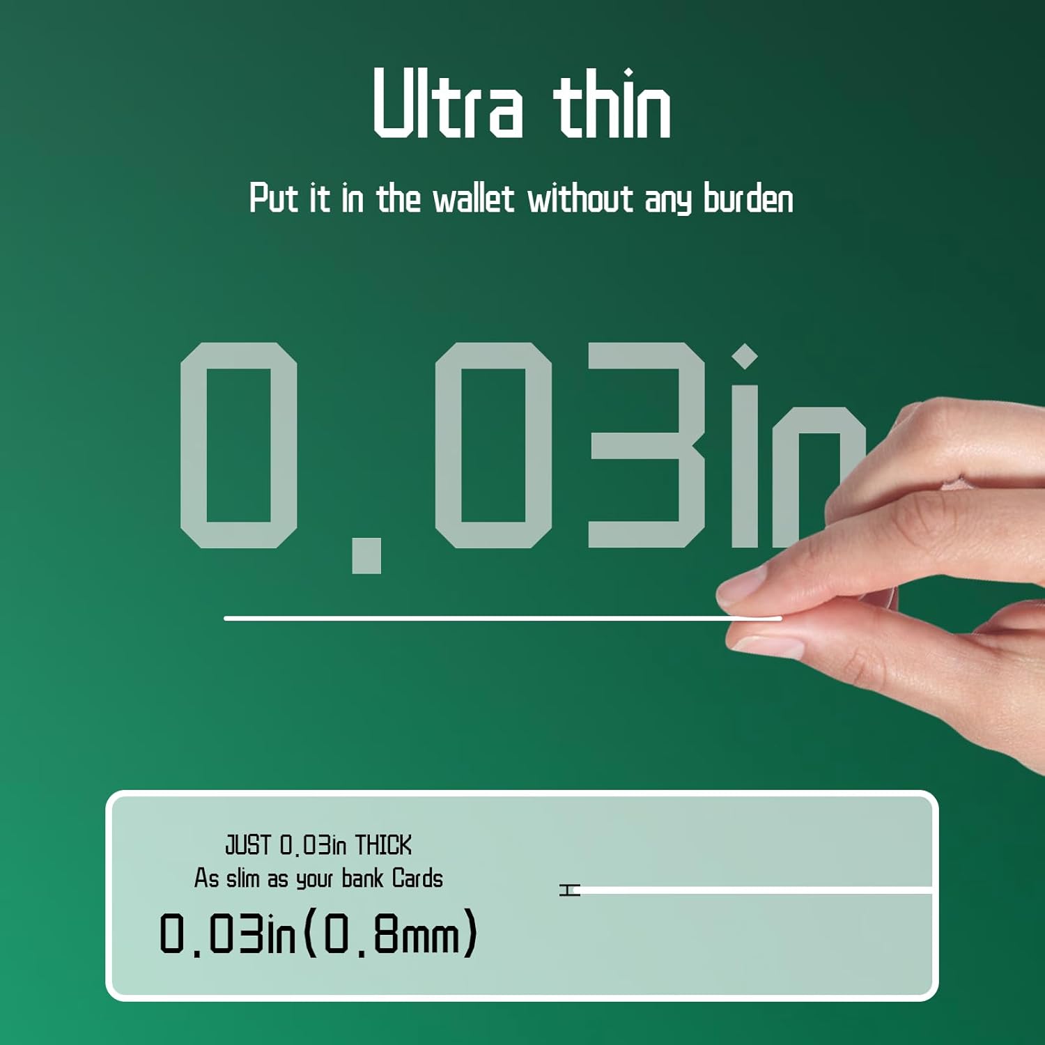 - Slim and Convenient Design:The card is ultra-thin and lightweight(0.3 inch), seamlessly fitting into any wallet or cardholder without adding bulk, ensuring effortless everyday carry and peace of mind.