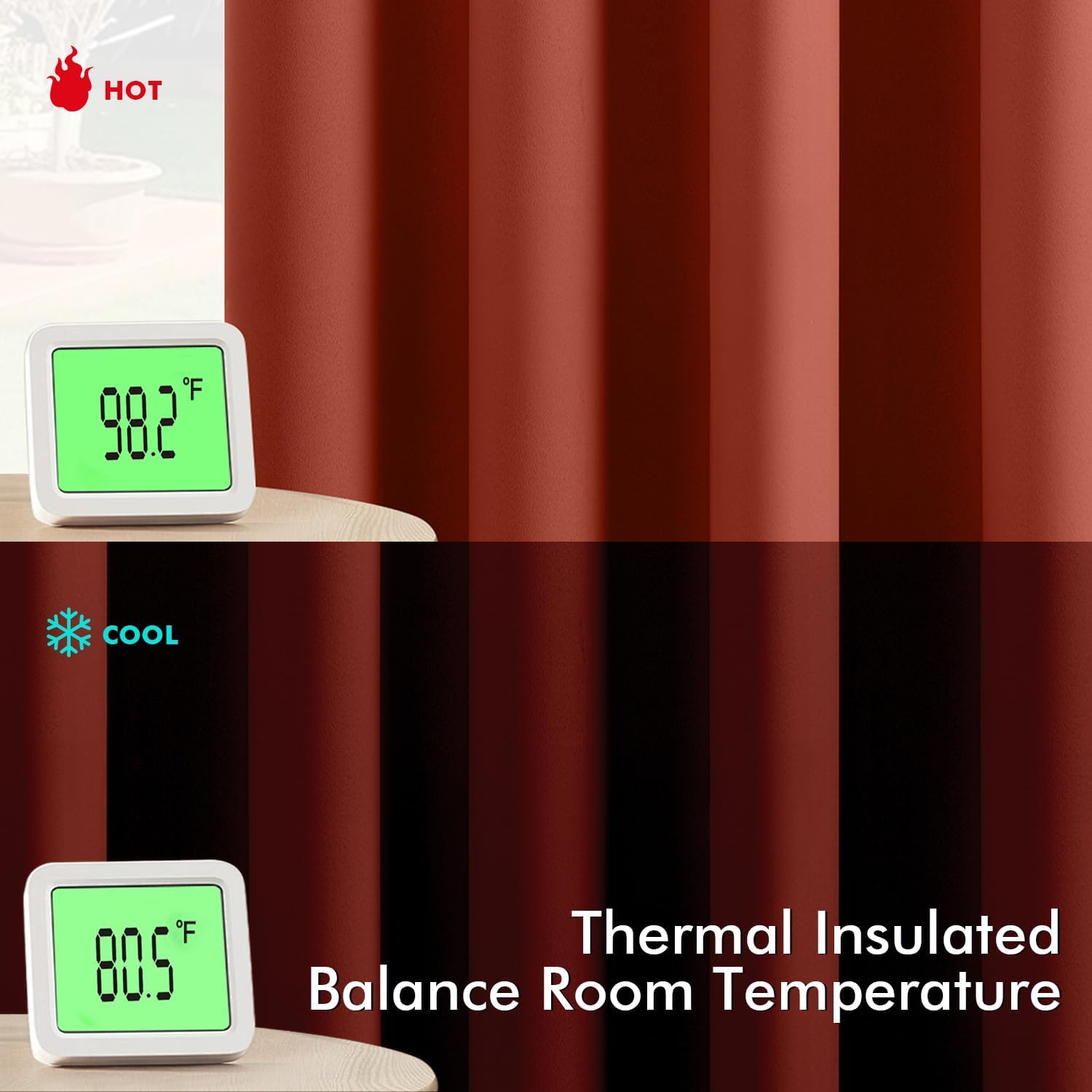 - Energy Saving: The thermal-insulated fabric keeps heat out in summer and retains warmth in winter, reducing your reliance on AC/heating and lowering energy costs by up to 15%. They are perfect for living rooms, bedrooms, patios, villas and offices