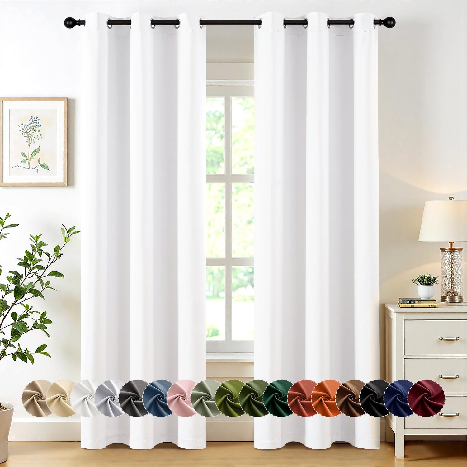 MIULEE Pure White Curtains for Bedroom Living Room 84 Inches Long 2 Panels, Thermal Insulated Room Darkening Drapes Grommet Top Solid Color Window Treatments W40 x L84 Inch