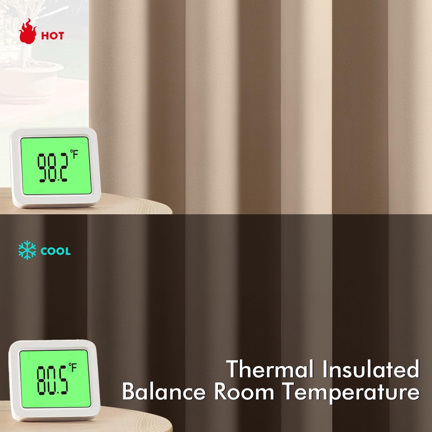 - High-Quality Material: Crafted from high-quality 225GSM polyester fabric, these curtains offer enhanced durability and elegant drape. The soft blackout material features triple-layer weaving technology, with a middle layer of black yarn for superior light blocking and privacy. Both sides feature the same refined color, ensuring a seamless look that elevates your homeβs aesthetic with understated sophistication