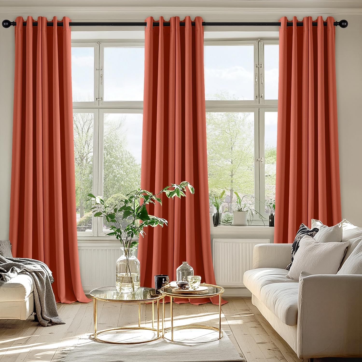 MIULEE Burnt Orange Blackout Curtains for Bedroom Living Room 96 Inches Long 2 Panels, Thermal Insulated Room Darkening Drapes Solid Grommet Top Noise Reduction Terracotta Rust Fall Window Treatments