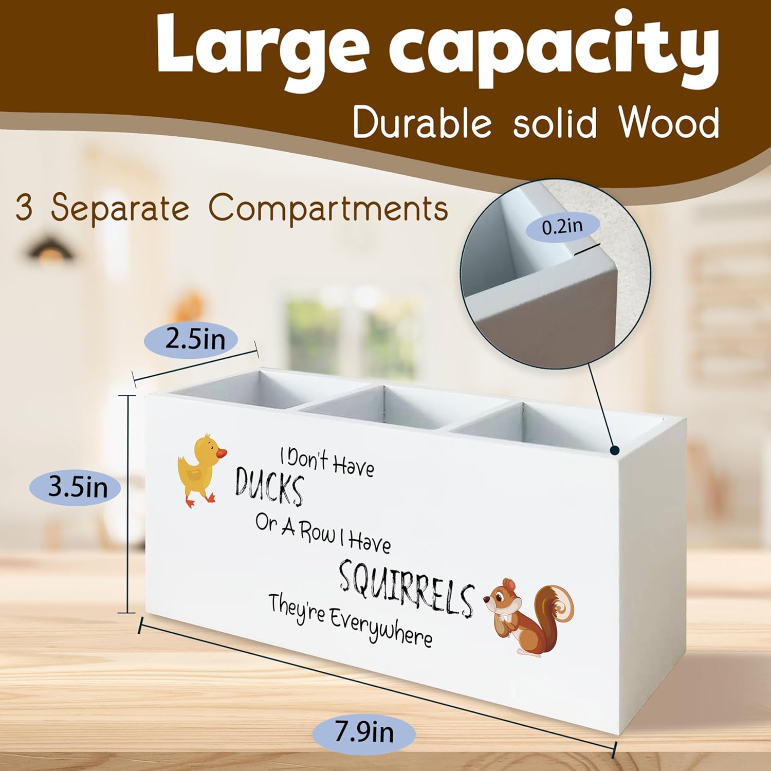 Funny Office Pen Holder for Desk, Dark Humor Office Work Gifts for Women Men Coworkers, I Don't Have Ducks in a Row Humorous Wooden Pen Pencil Holder Organizer for Desk Accessories