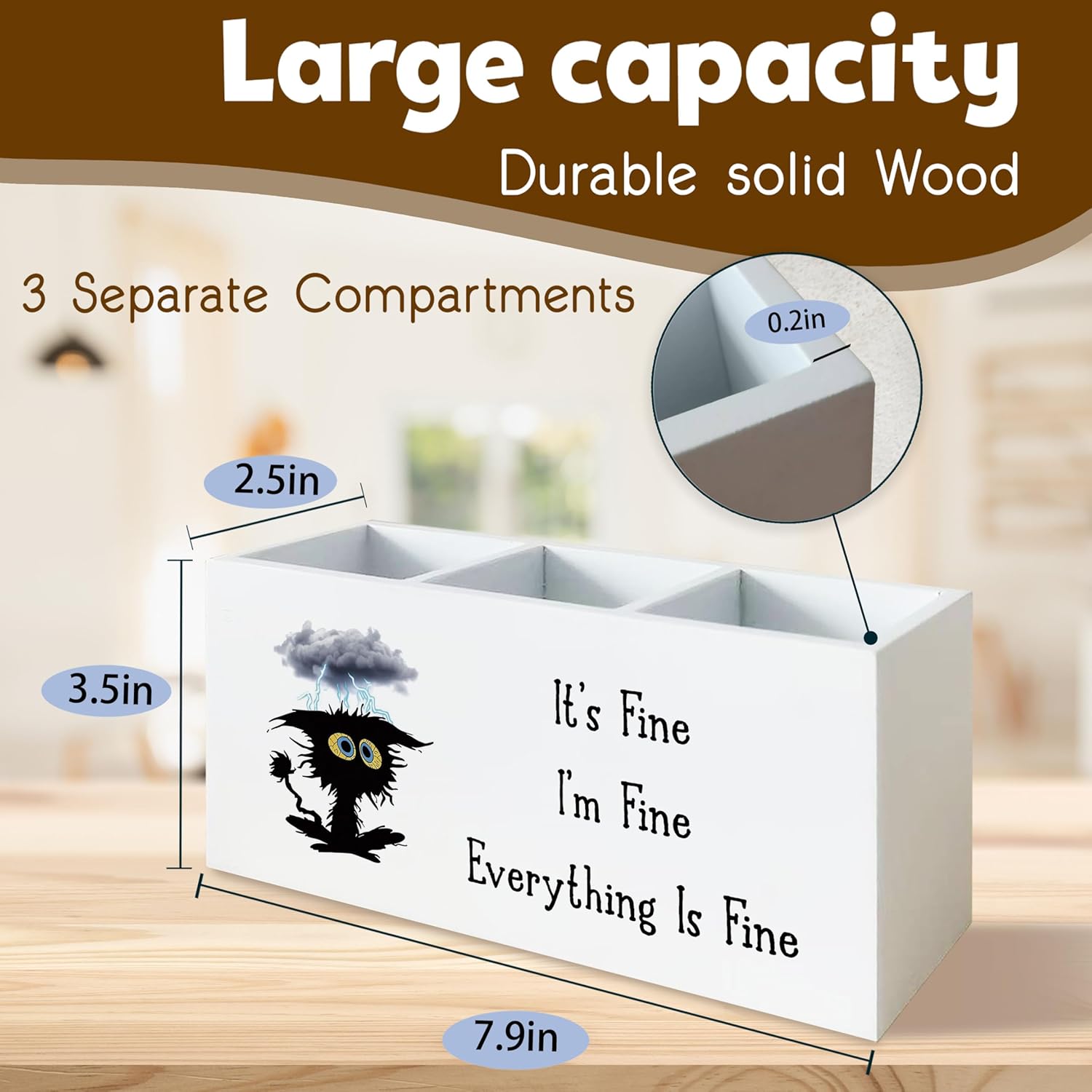 - Three Compartments for Organization: Keep everyday items like pens, brushes, or remote controls sorted and easy to find with three divided sections.
