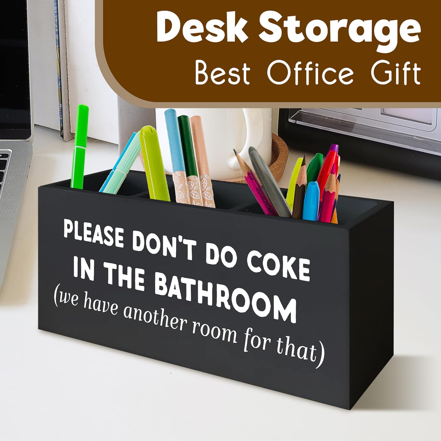 Funny Bathroom Decor Signs Please Don't Do Coke in The Bathroom Shelf Decor, Funny Desk Pen Holder, Funny Signs Office Wooden Pen Holder