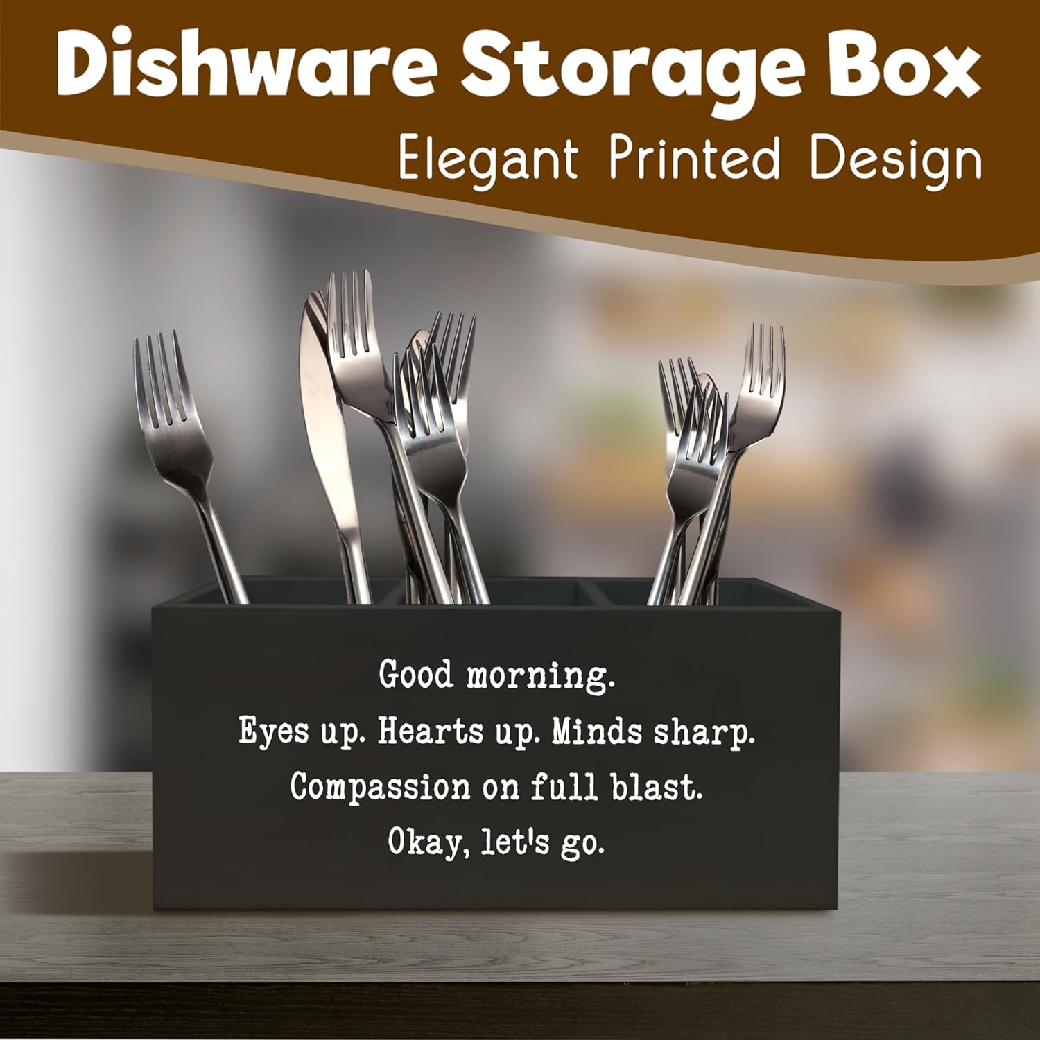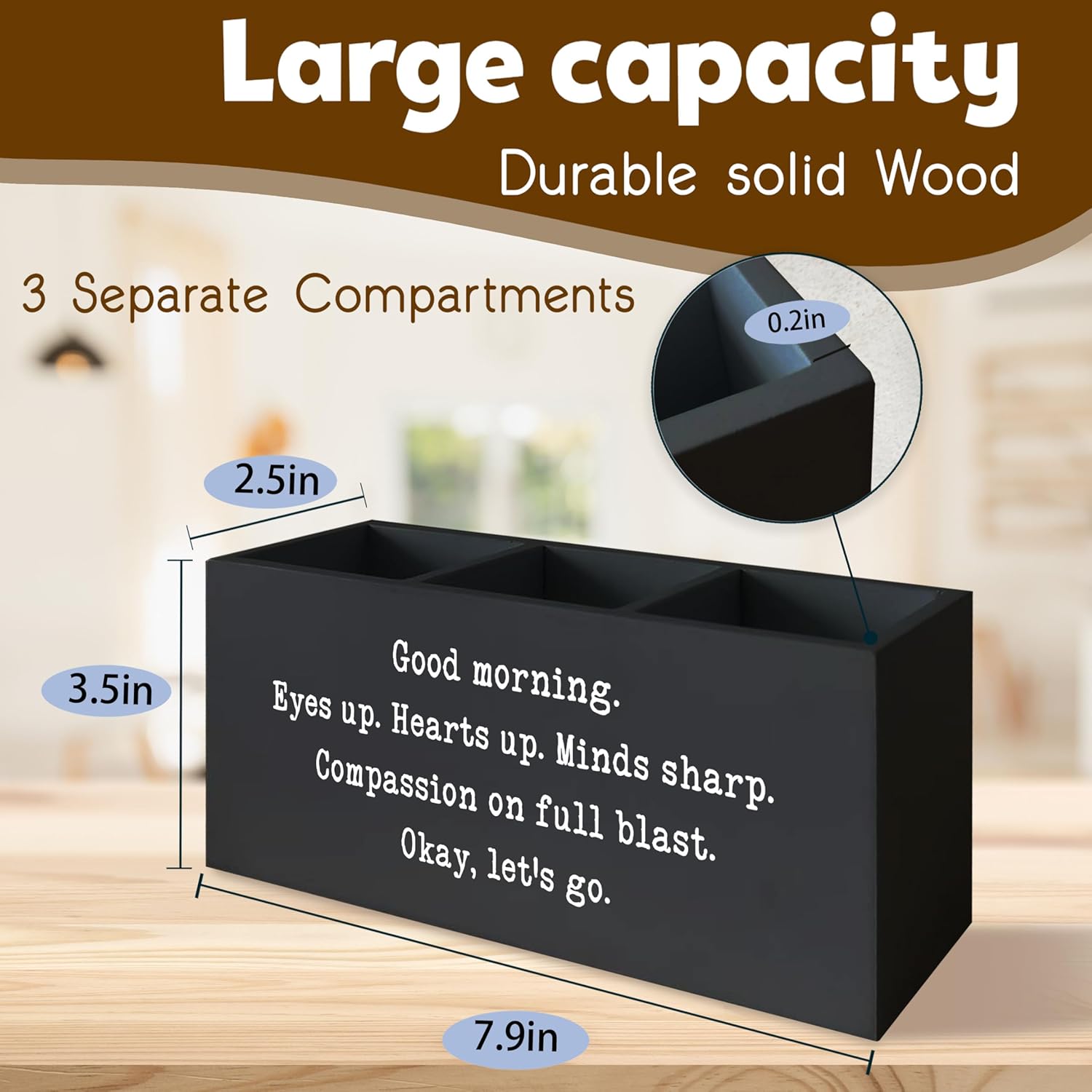Positive Black Pen Holder for Desk, Inspirational Desk Decor, Funny Gifts for Coworkers Women Men Wooden Pen Pencil Holder Organizer for Office Accessories