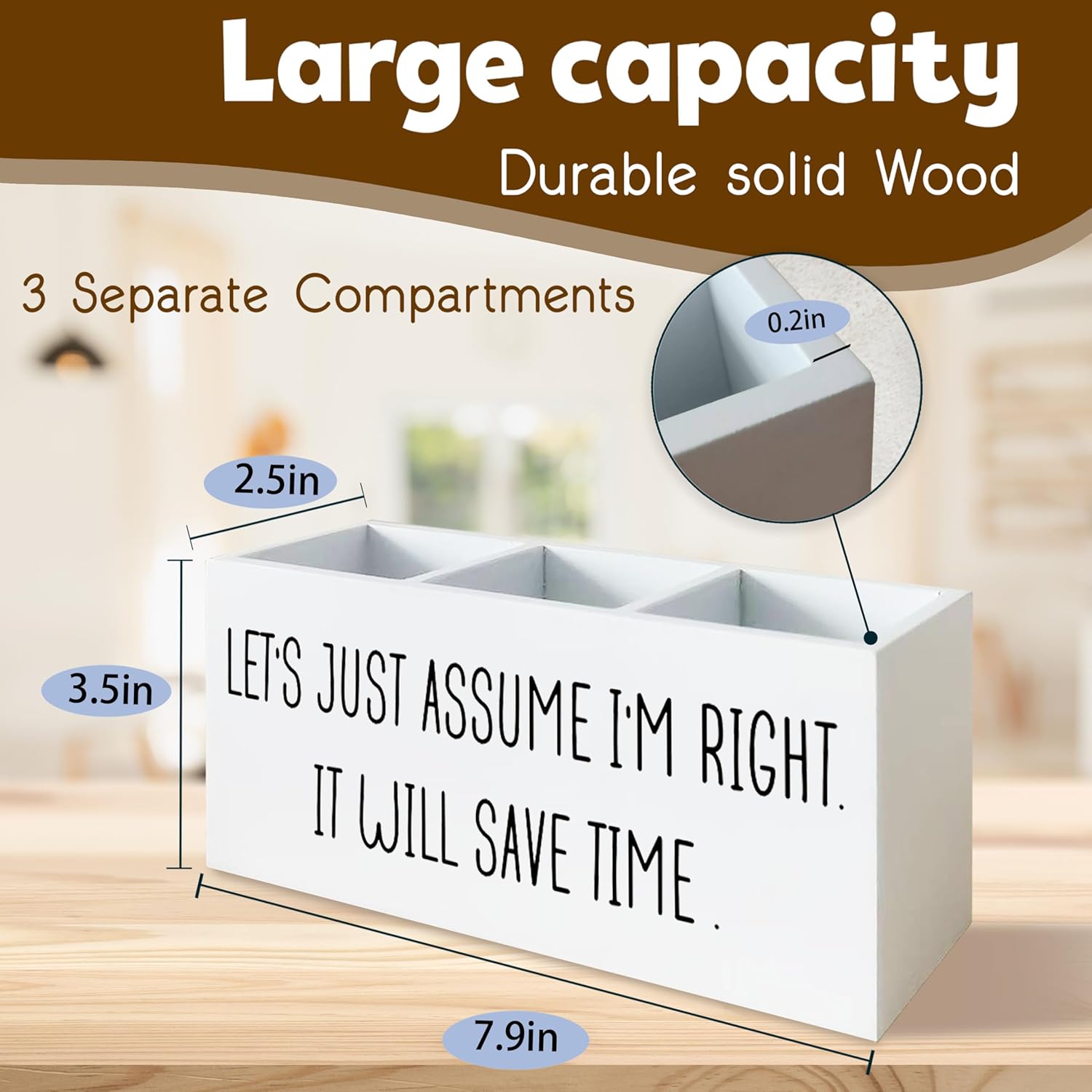 Boss's Day Gifts, Funny Desk Pen Holder Boss Gifts for Women, Let's Just Assume I'm Right Wooden Pen Pencil Holder Organizer for Office Desk Accessories