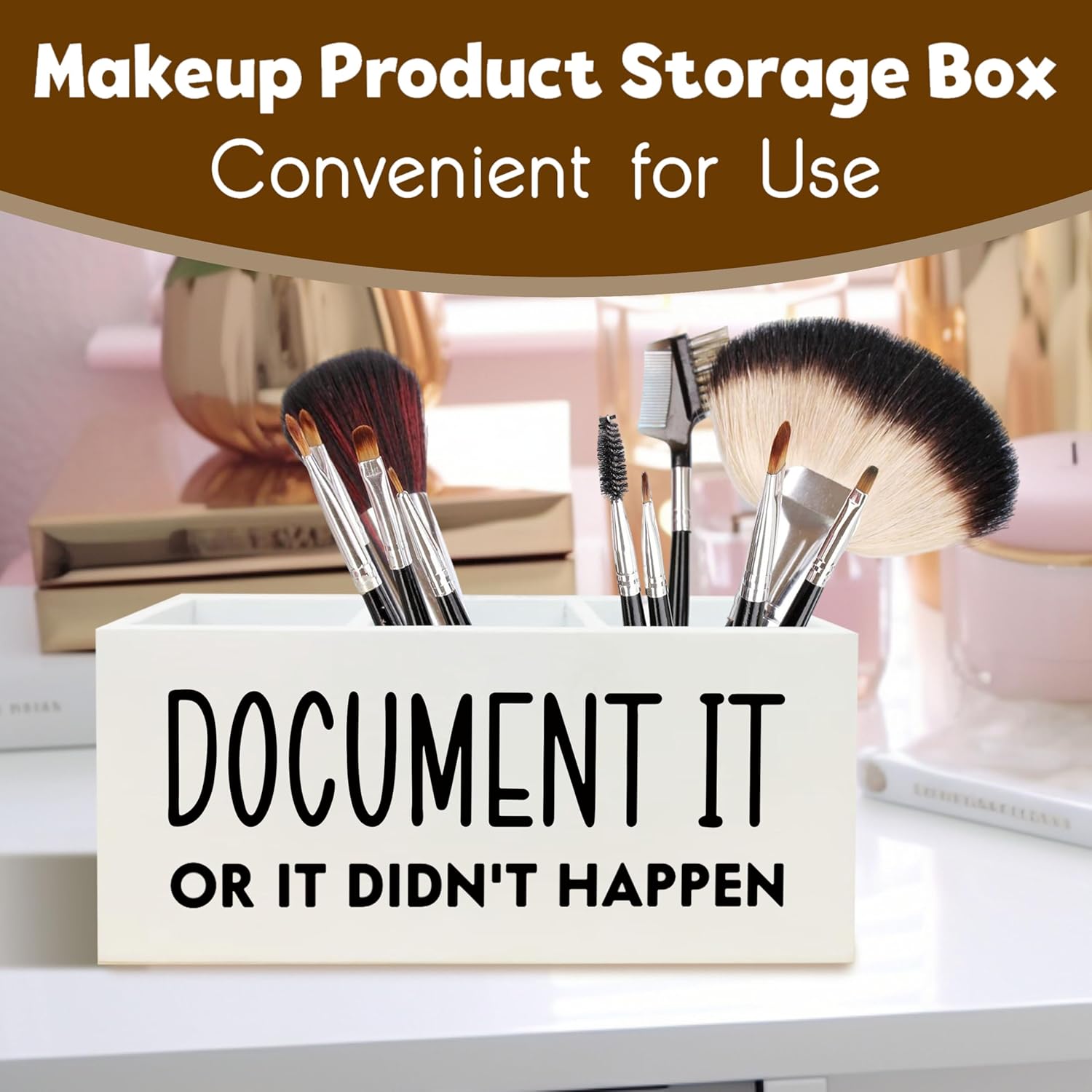 Funny Pen Holder for Desk, HR Human Resource Office Decor, Office Humor Gifts for Coworkers, Document It or It Didn't Happen Wooden Pen Pencil Holder Organizer for Desk Accessories