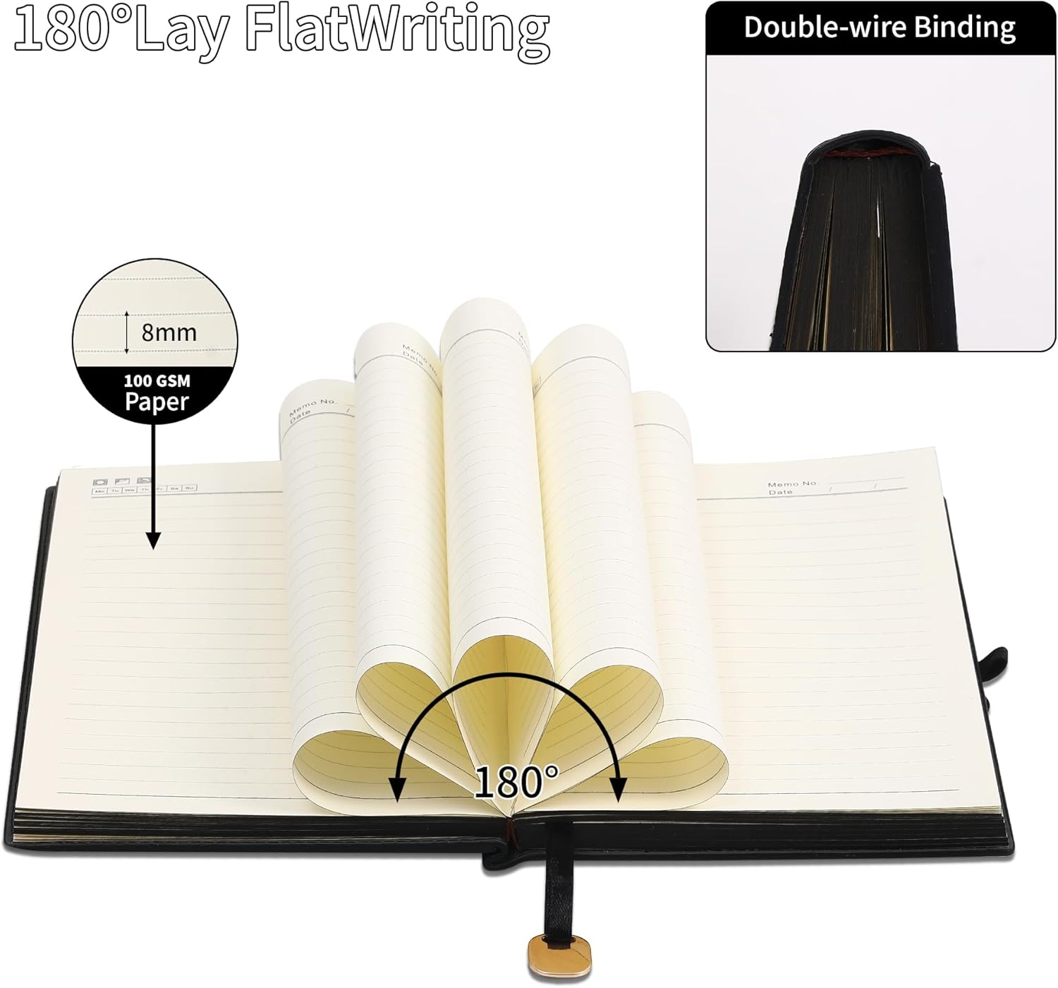 - Lay-Flat Design With Storage Pocket: The leather cover pocket is super handy for slipping in notes, receipts, cards or other small items. The stylish front pocket notebook is a useful companion for work meeting, travel notebook, notepad or to do list. 180° lay flat design makes it easy to write, whether you're right or left-handed