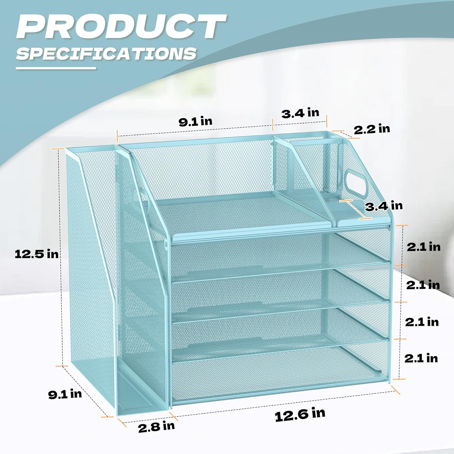- 5 Tier Organization with Pen Holder: This Blue desk organizer boasts a 5-tier design for efficient sorting of your papers, letters, and other office supplies, along with a dedicated pen holder. It's perfect for maintaining a tidy and uncluttered workspace. The desk file organizer is an essential desk accessory that contributes to an orderly and professional atmosphere