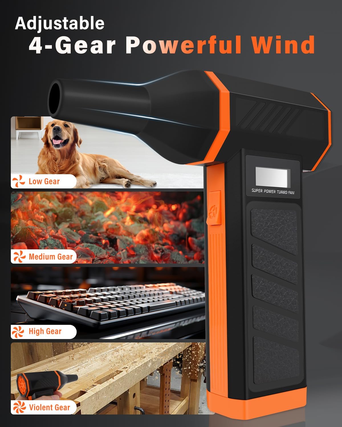 - 【Fast Charging Air Duster】This rechargeable duster has a 5000mAh battery for 40+ mins of runtime (low speed), saving you from repeatedly buying disposable compressed air cans. Type-C fast charging fills in 2.5 hrs. LCD shows battery, speed & mode. Built-in LED light helps clean dark spaces.