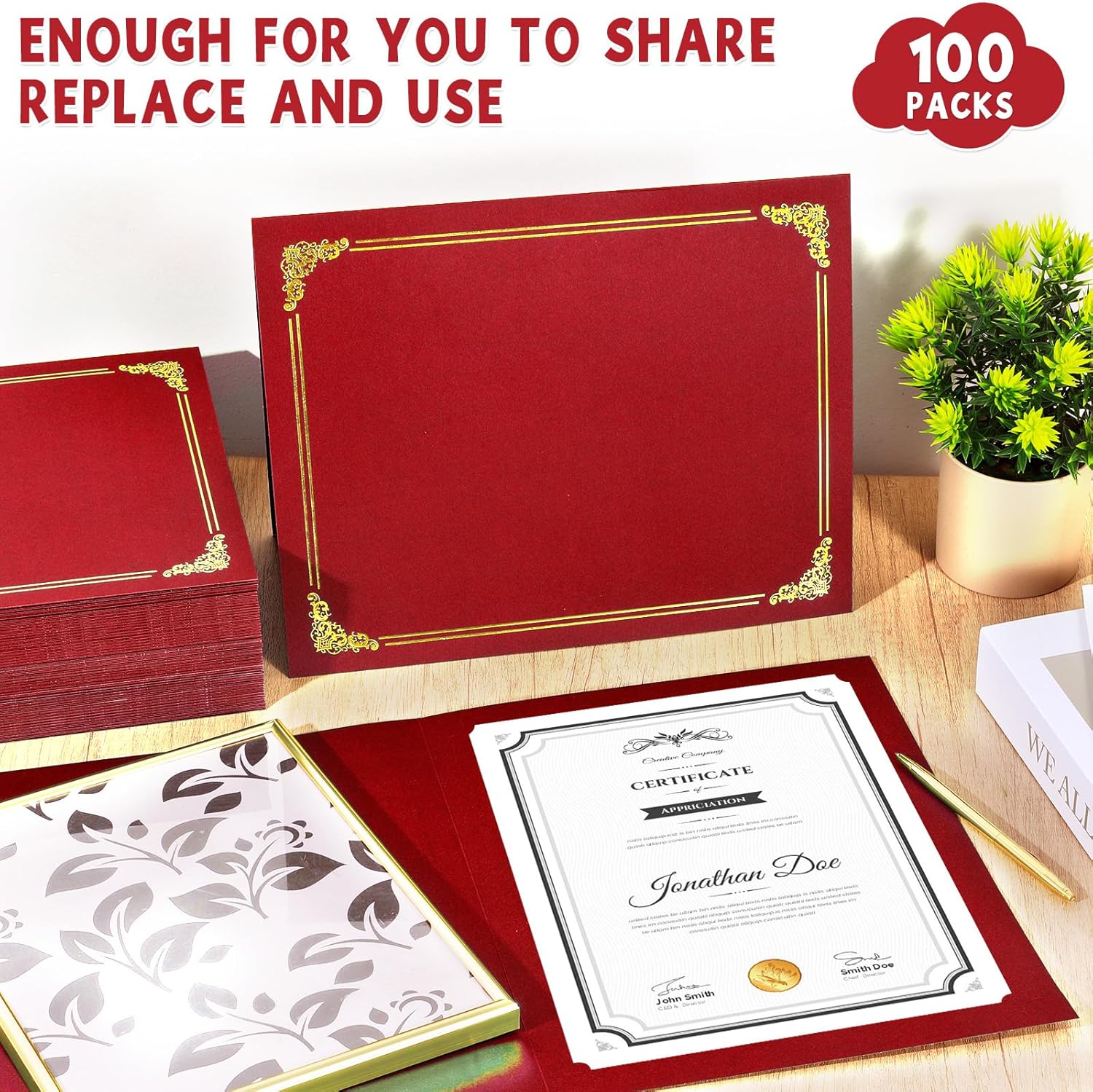 - Package includes: You’ll get 100pcs of red certificate holders for 8.5 x 11 inches certificates offer elegant presentation and protection. These diploma holders are ideal for issuing certificates of appreciation, high school diplomas, important letters, business documents, autographed photos, and letter-sized cardstock. Reliable packaging protection prevents the certificate covers from bending and creases during transportation