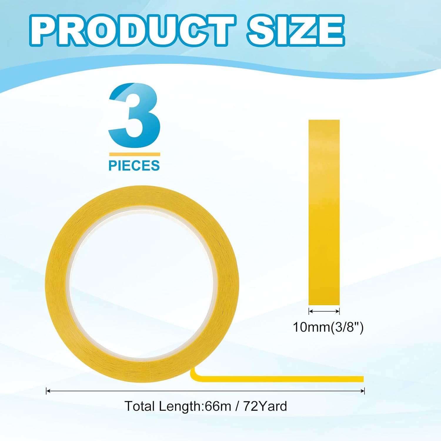 - This pinstripe tape provide here is in the size of: Width: 10mm(3/8"), Length: 66m(72 Yard); In the package of: 3 x Chart Line Tape