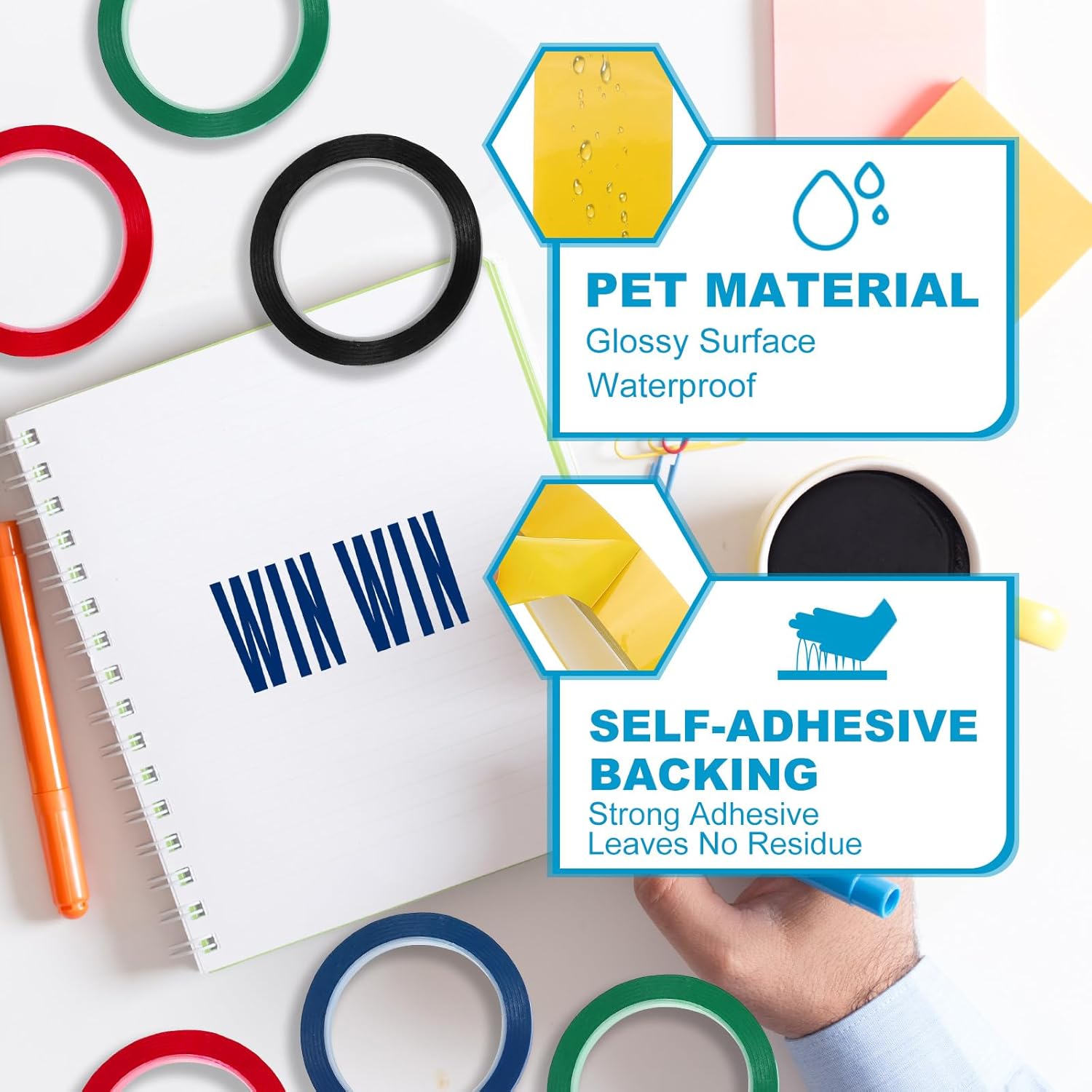 - This glossy whiteboard tape is made of PET, waterproof, insulating, corrosion-resistant, and suitable for whiteboards, dry erase boards, plastics, glass, paper, wood, metal, ceramics, etc.