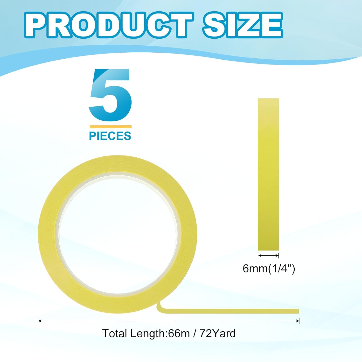 MECCANIXITY Whiteboard Tape 1/4" x 72 Yard Pinstripe Graphic Chart Line Grid Marking Tapes for Classroom Office Dry Erase Board Art, Light Yellow, Pack of 5