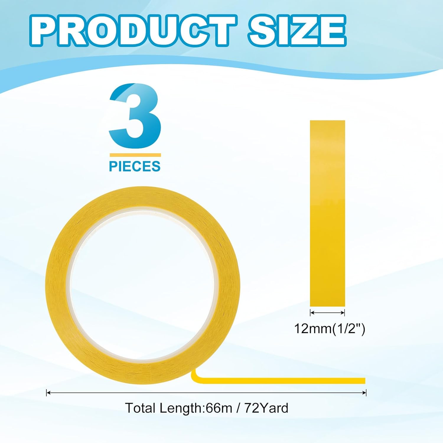 MECCANIXITY Whiteboard Tape 1/2" x 72 Yard Pinstripe Graphic Chart Line Grid Marking Tapes for Classroom Office Dry Erase Board Art, Dark Yellow, Pack of 3