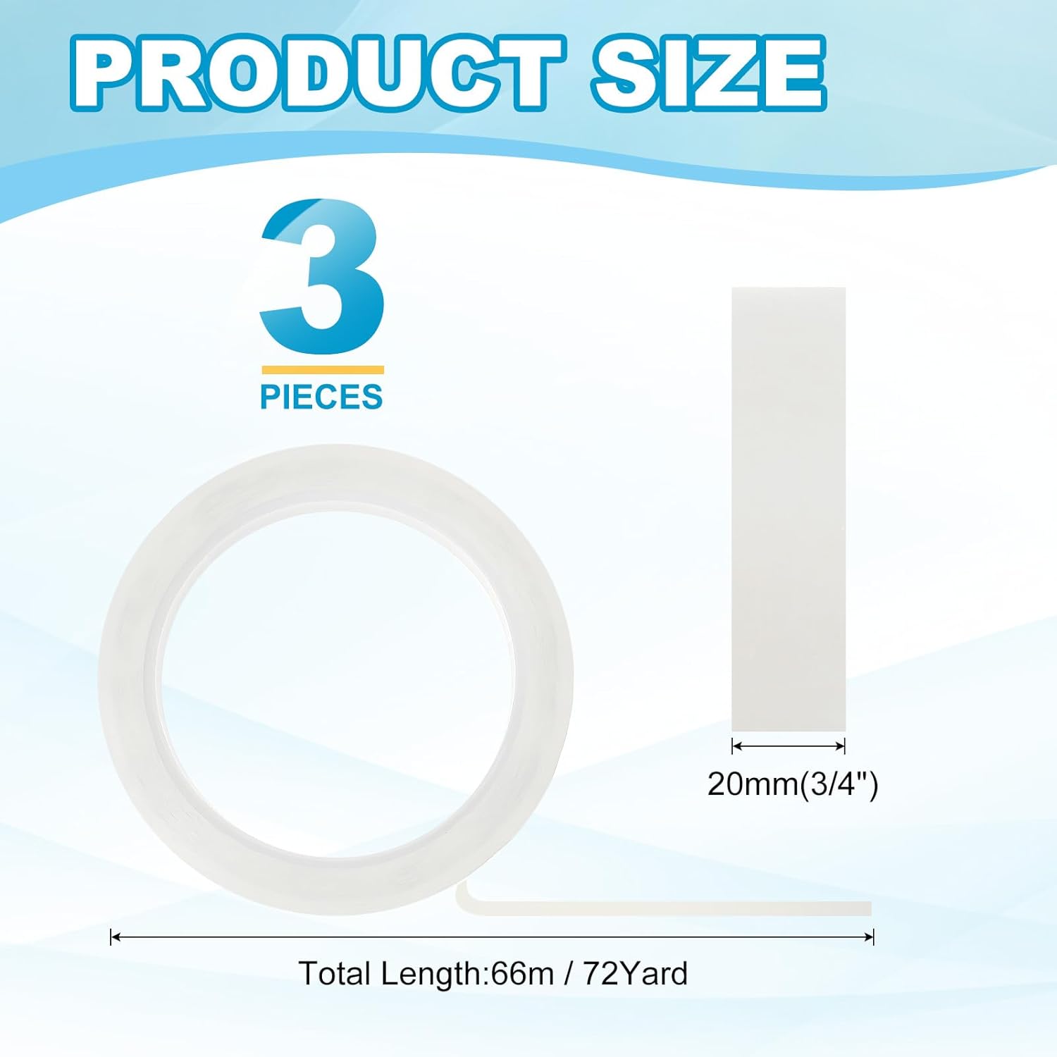MECCANIXITY Whiteboard Tape 3/4" x 72 Yard Pinstripe Graphic Chart Line Grid Marking Tapes for Classroom Office Dry Erase Board Art, Clear, Pack of 3