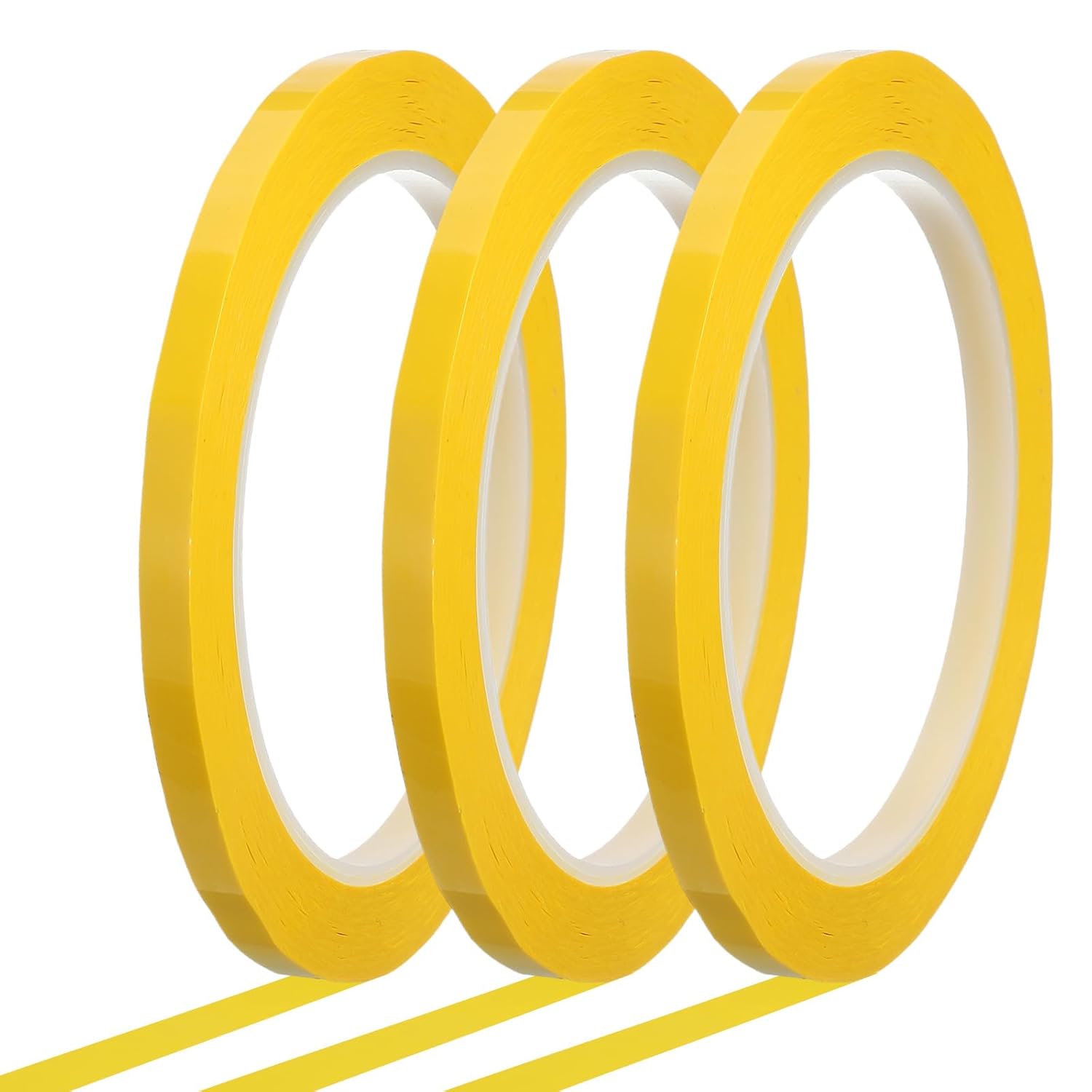 MECCANIXITY Whiteboard Tape 1/4" x 72 Yard Pinstripe Graphic Chart Line Grid Marking Tapes for Classroom Office Dry Erase Board Art, Dark Yellow, Pack of 3
