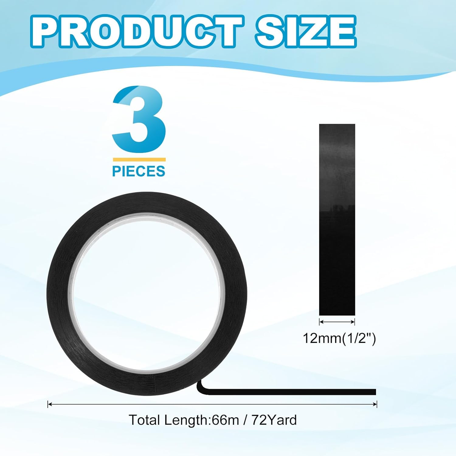 MECCANIXITY Whiteboard Tape 1/2" x 72 Yard Pinstripe Graphic Chart Line Grid Marking Tapes for Classroom Office Dry Erase Board Art, Black, Pack of 3