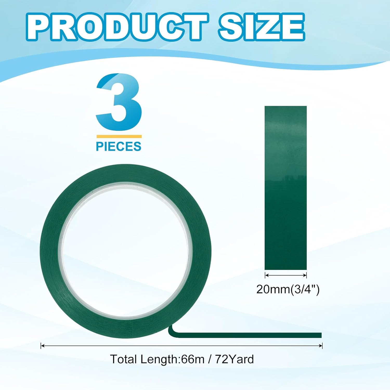 MECCANIXITY Whiteboard Tape 3/4" x 72 Yard Pinstripe Graphic Chart Line Grid Marking Tapes for Classroom Office Dry Erase Board Art, Green, Pack of 3