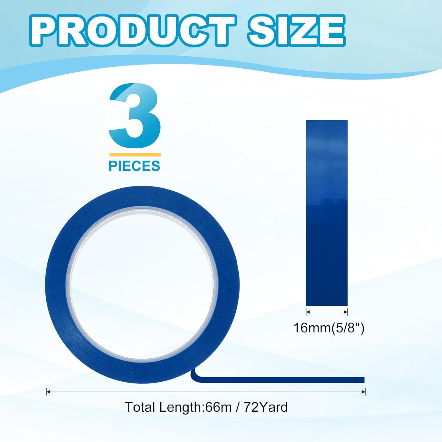 - This pinstripe tape provide here is in the size of: Width: 16mm(5/8"), Length: 66m(72 Yard); In the package of: 3 x Chart Line Tape