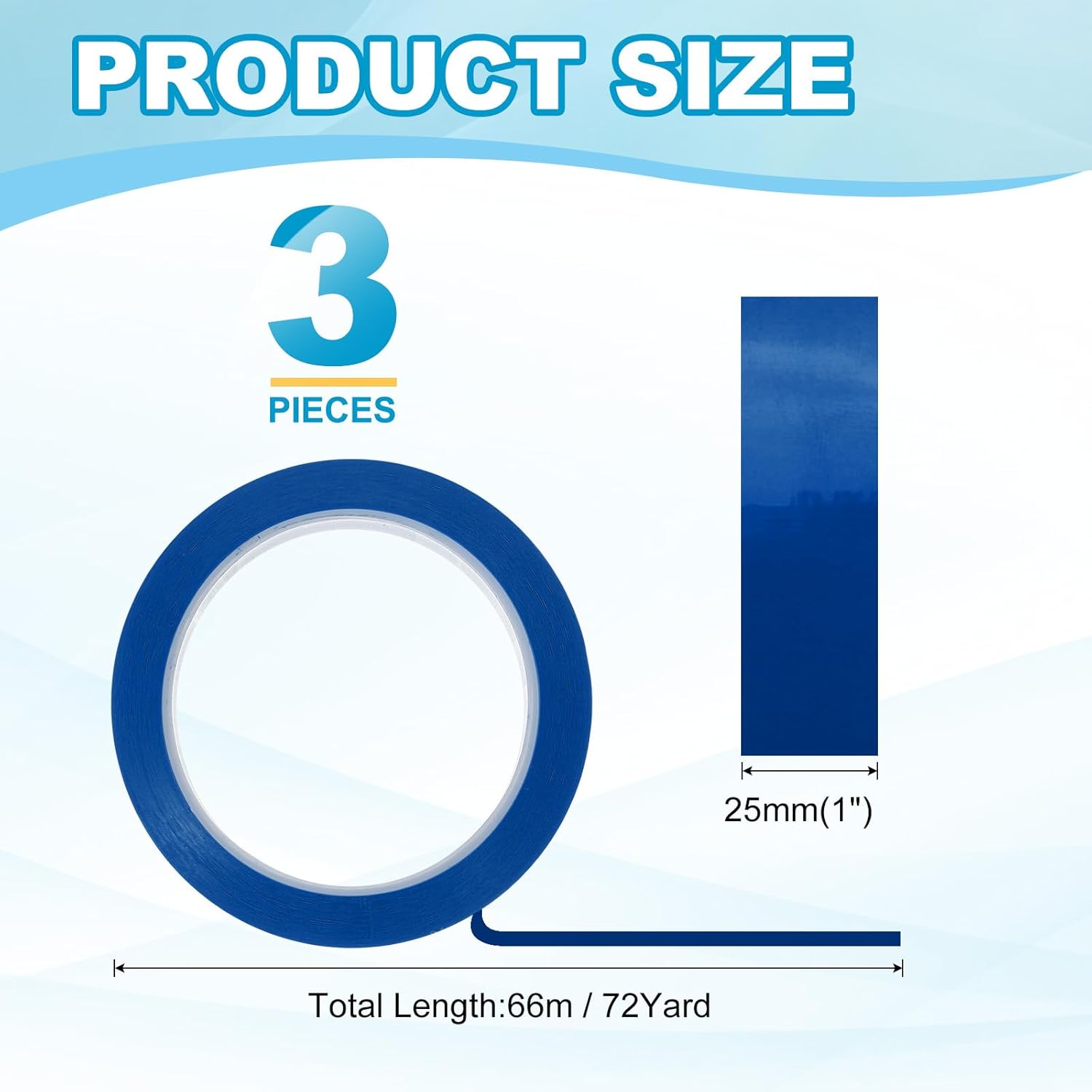 MECCANIXITY Whiteboard Tape 1" x 72 Yard Pinstripe Graphic Chart Line Grid Marking Tapes for Classroom Office Dry Erase Board Art, Blue, Pack of 3
