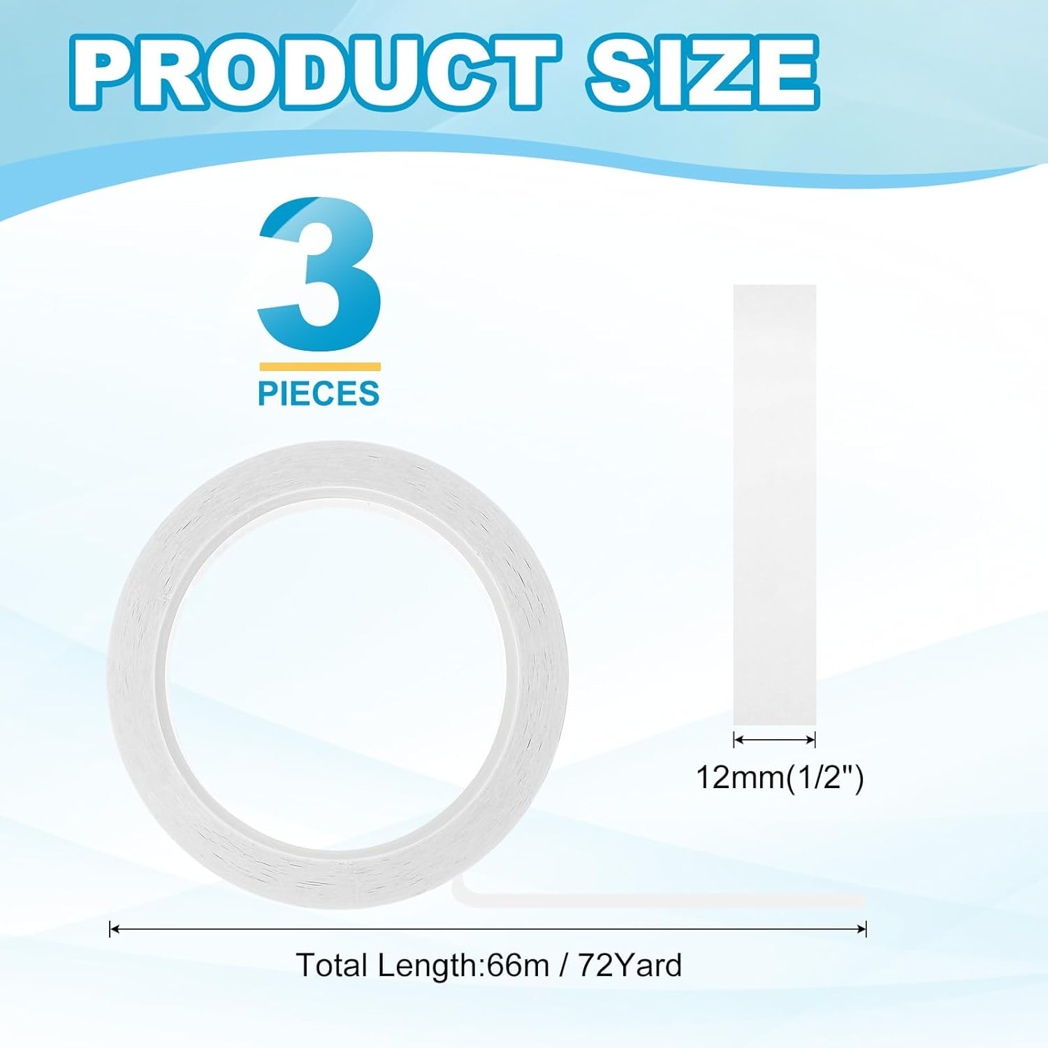 - This pinstripe tape provide here is in the size of: Width: 12mm(1/2"), Length: 66m(72 Yard); In the package of: 3 x Chart Line Tape
