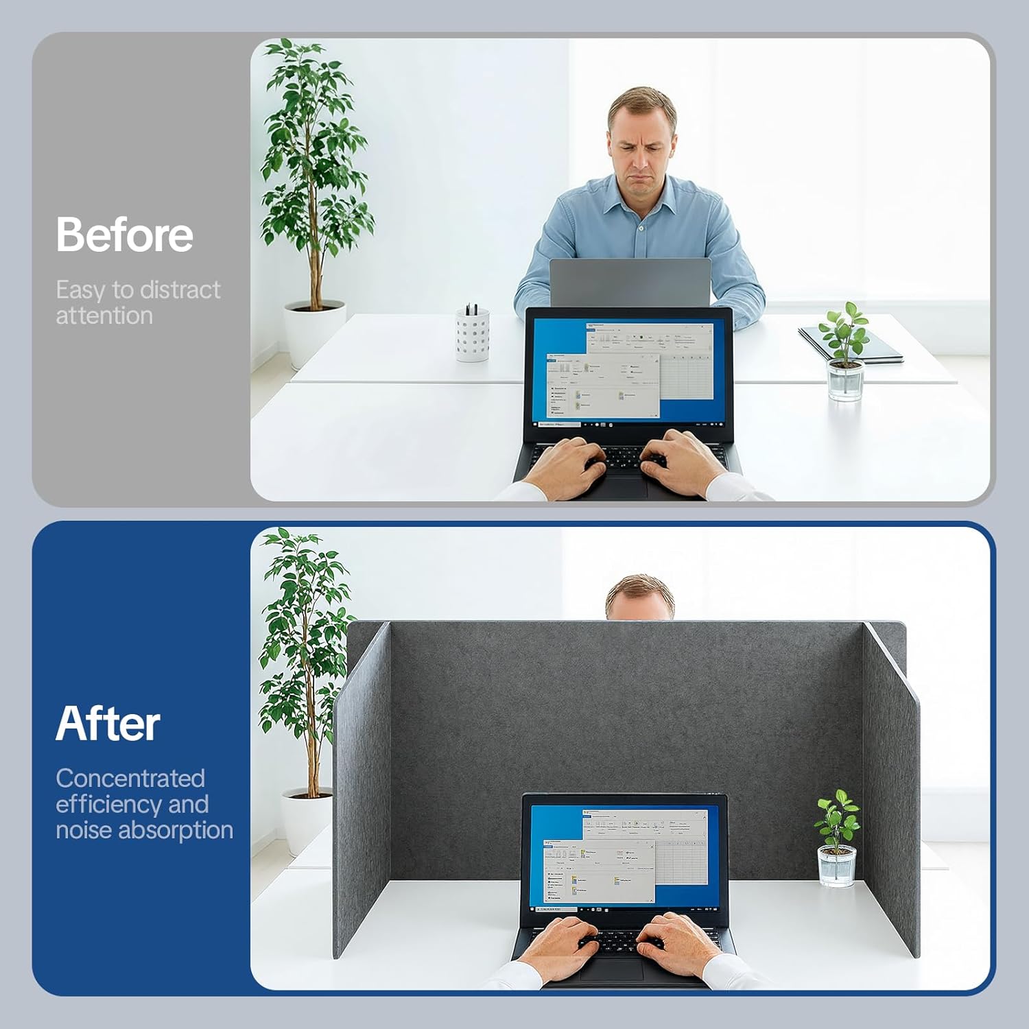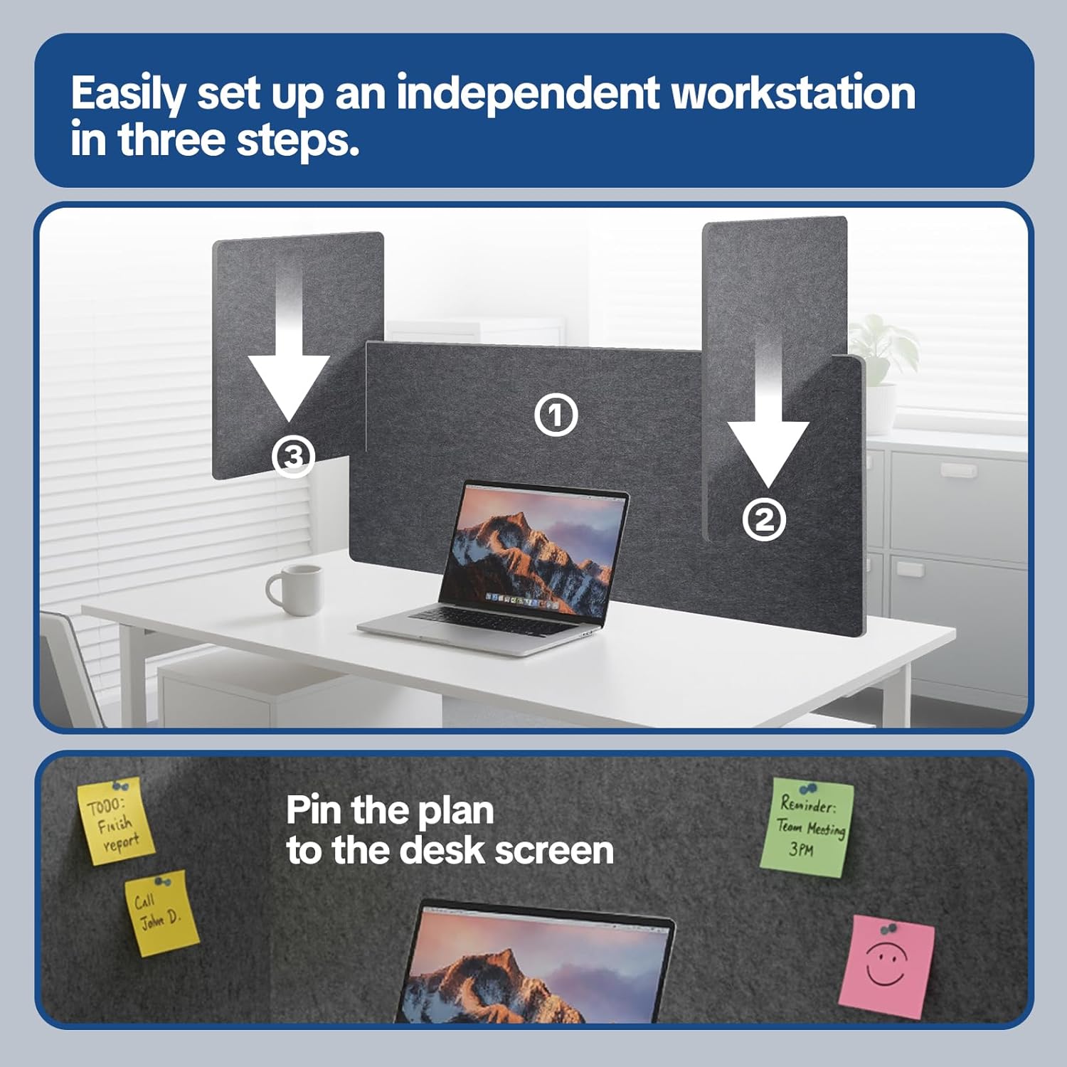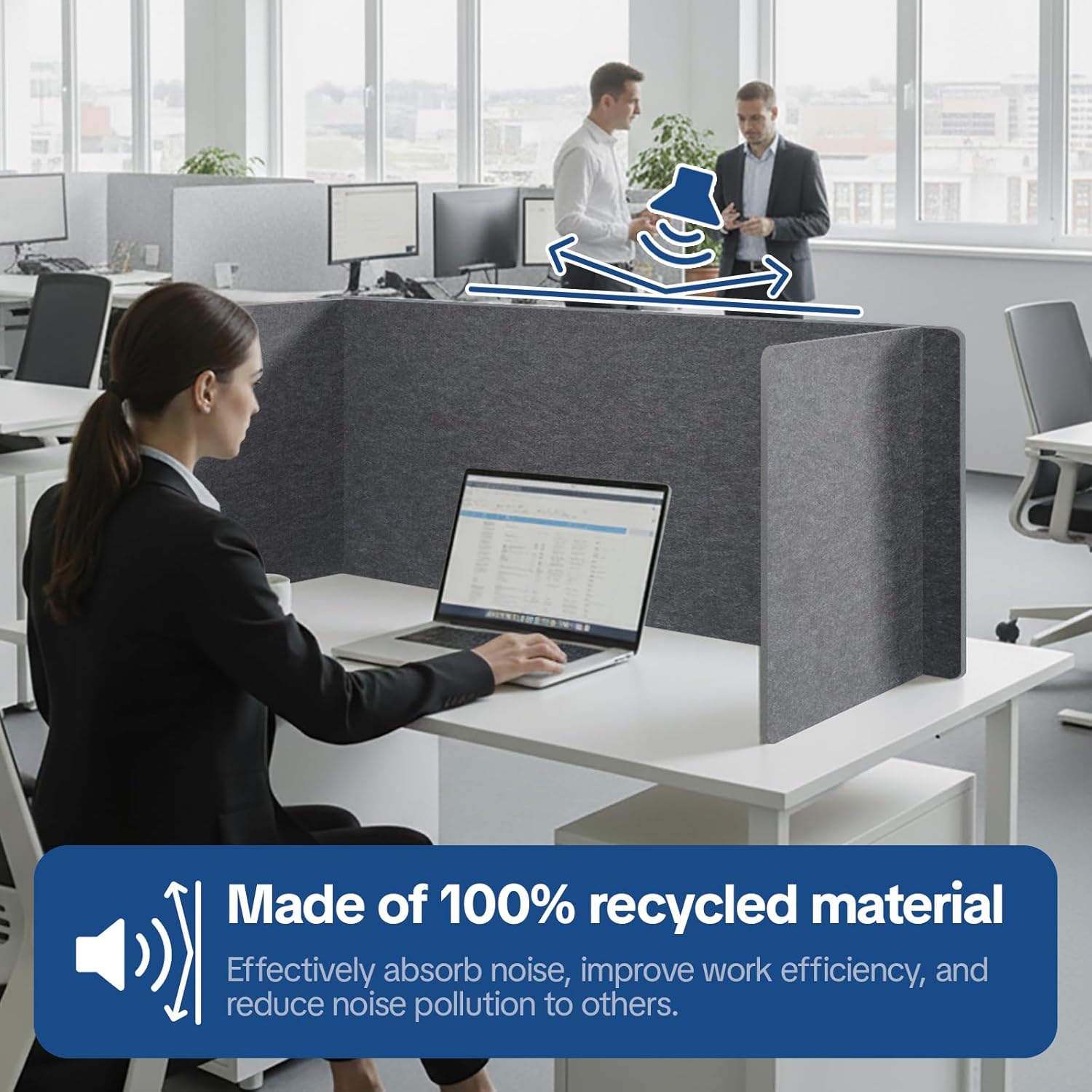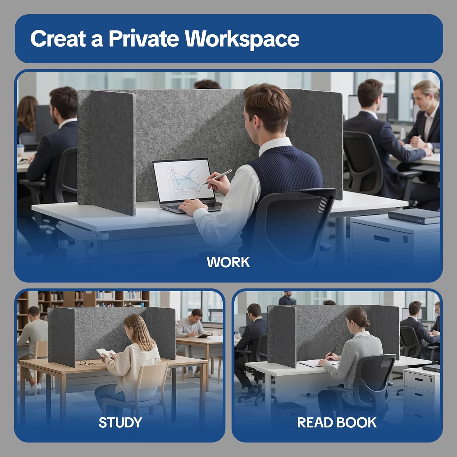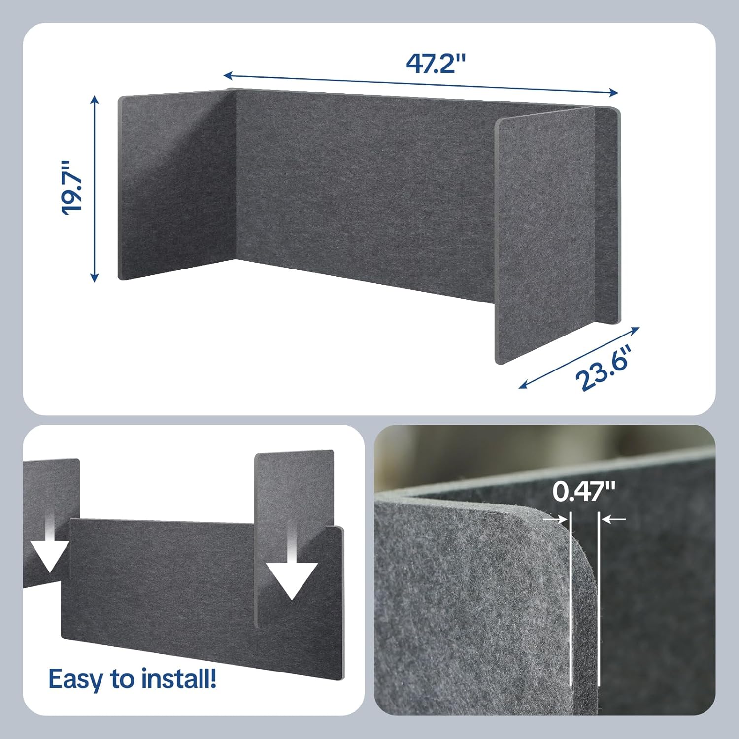 Desk Divider Privacy Screen 3 Panel Sound Absorbing - 47.2”x 23.6”x 19.7” Freestanding Acoustic Partitions for Office, Noise Reducing Panels for School, Home, Library,Dark Grey