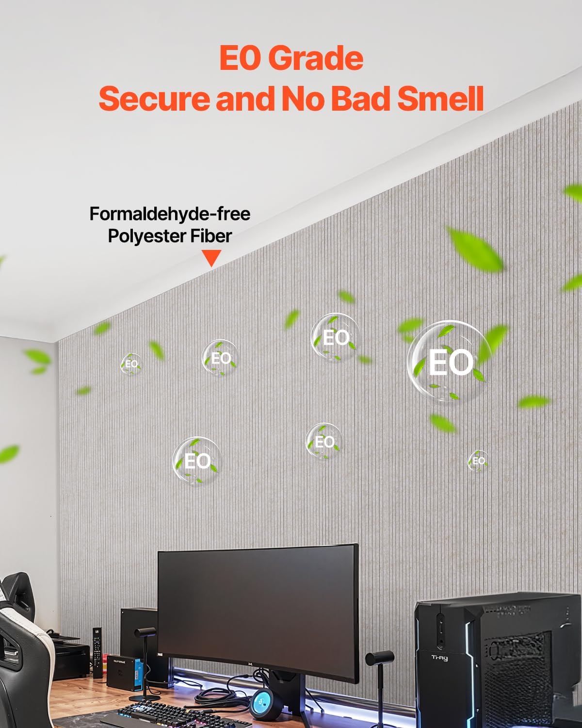 - Efficient Sound Absorption: Made with high-quality polyester fiber, our large-sized, high-density panels cover more area. With an NRC value of up to 1, they effectively absorb mid- to high-frequency noise, reduce echoes and reverberation, creating a quiet and comfortable environment for you