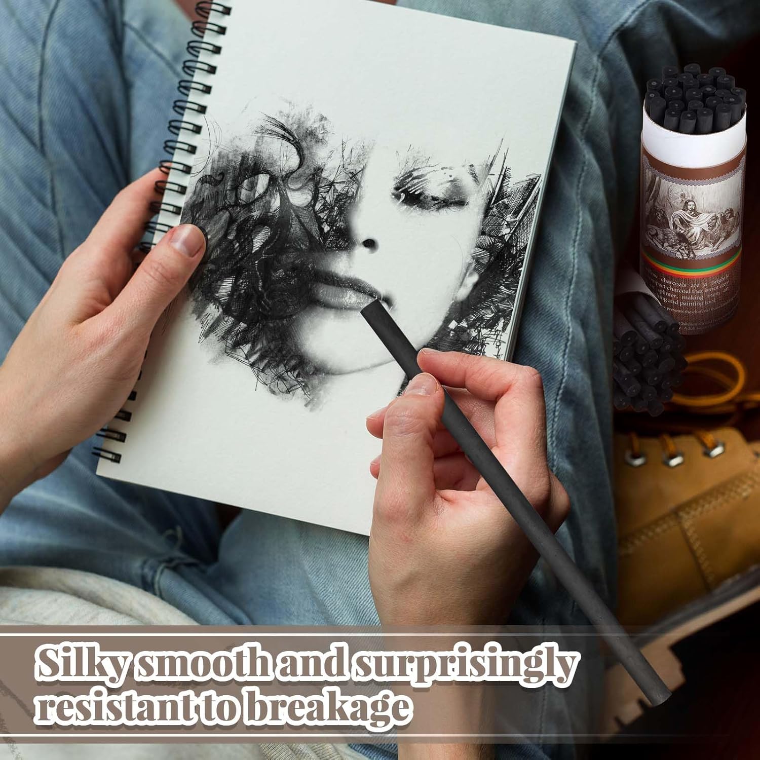 - Ample Supply: you will receive 2 boxes, each containing 25 pieces, the package comes with 50 pieces of charcoal sticks in total, whether you're an experienced artist, a hobbyist, or a beginner, preparing yourself for long lasting creative binge sessions without worrying about shortage