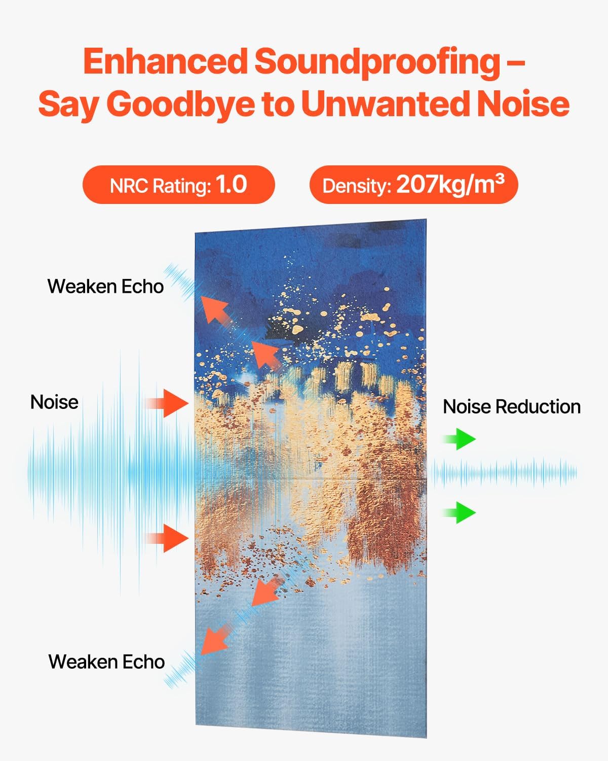 VEVOR 6 Pack Art Acoustic Panels, 70.87 x 47.24 x 0.4 inch Soundproof Wall Tiles, Self Adhesive Decorative Sound Dampening Absorbing Boards for Home, Office, Studio, Gaming Room,Theater, Pastel