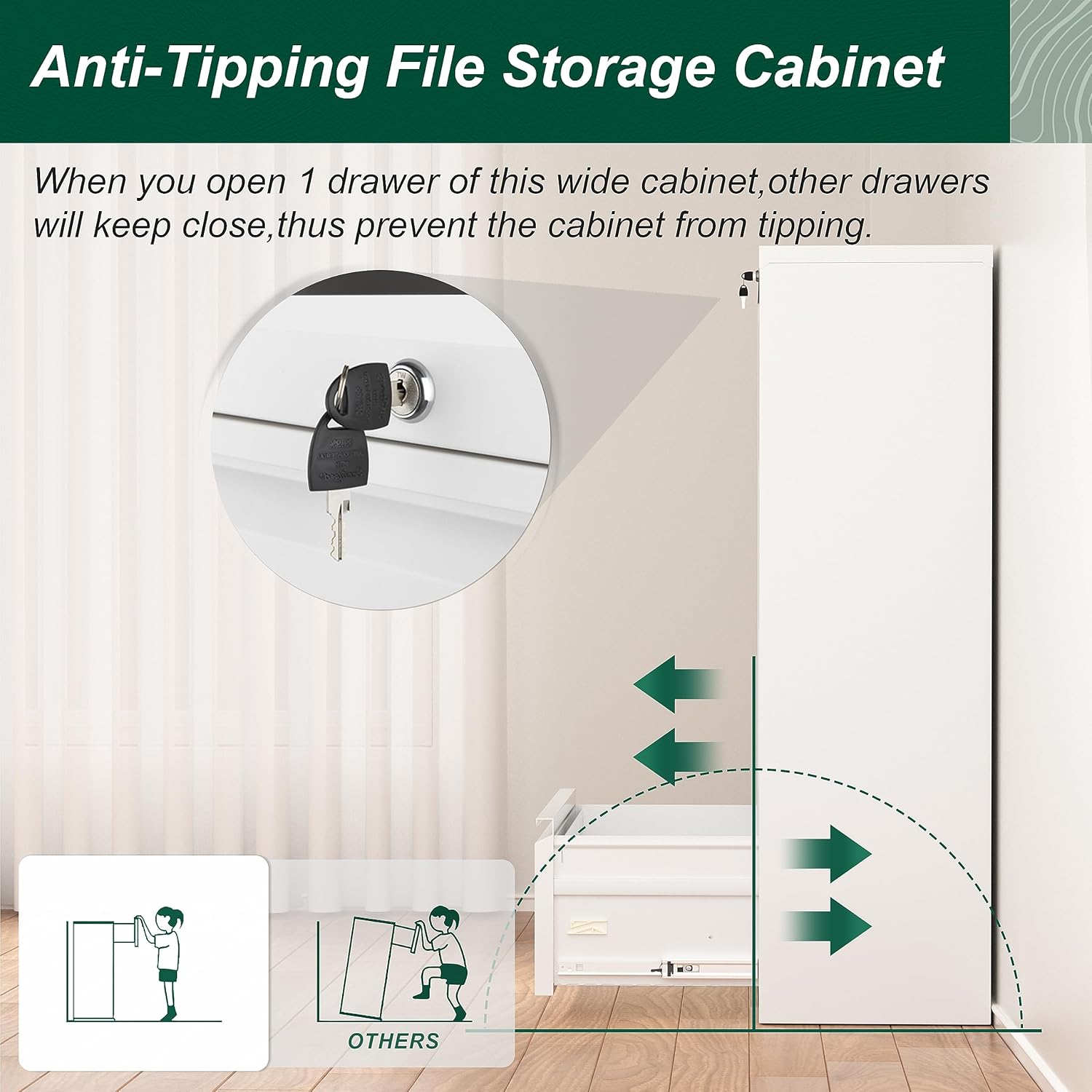 - ✔Lockable Lateral File Cabinet -- Our locking lateral filing cabinet with lock keys and features a interlock system that secures all drawers at once and keeps your important documents safe and secure while you are away from your workspace. With all drawers interlocking mechanism design, it will prevent tipping.