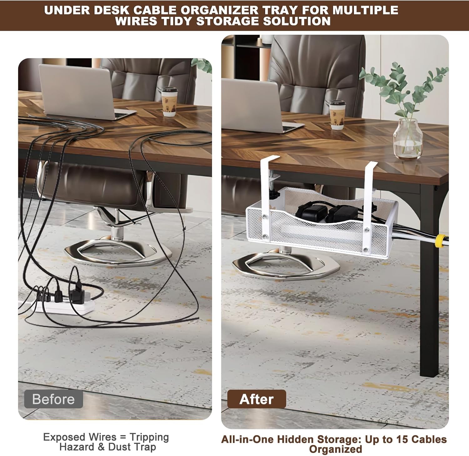 - Sleek & Professional Aesthetic : Enhance your workspace with the sleek design of the Extra Wide Under Desk Cable Management Tray. Not only does it keep your cables organized and out of sight, but it also contributes to a clean, professional aesthetic that enhances productivity and creates a visually appealing environment.