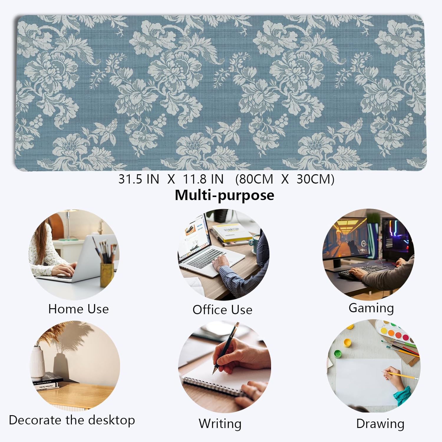 - 【Stylish appearance Designs】We choose the vintage and fashionable blue and white art floral pattern, and use excellent printing technology to ensure bright colors. This is a great decoration for your home office desk and dorm table mat, which can add some personality to your workplace and home.