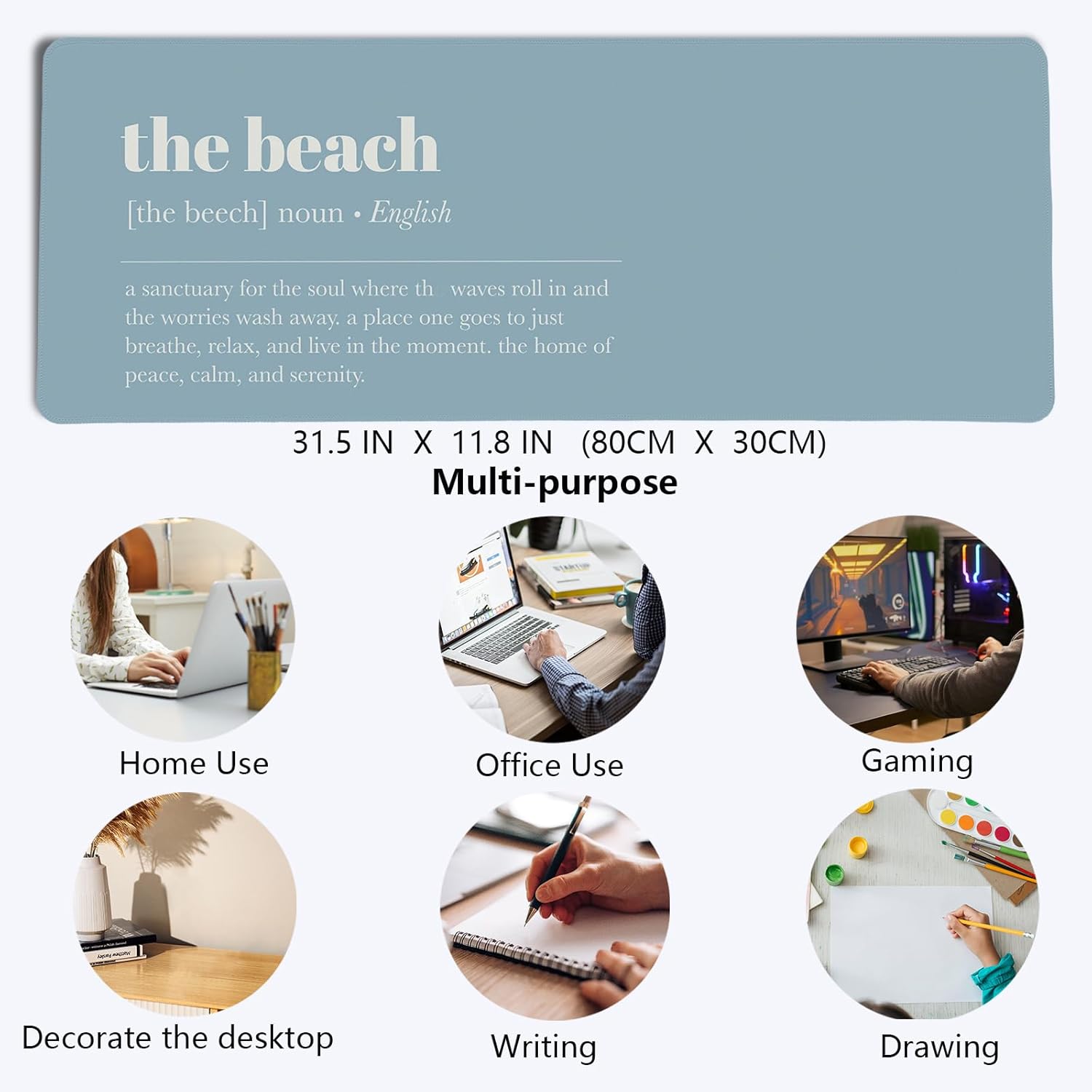 Blue Ocean Beach Mouse Pad,Blue Coastal Mouse Pad,Big Large Ocean Desk Mat,Beautiful Sentence Desk Mat,Summer Beachy Gaming Computer Pads,Beach House Decor,Gift for Beachy House,31.5x11.8Inch