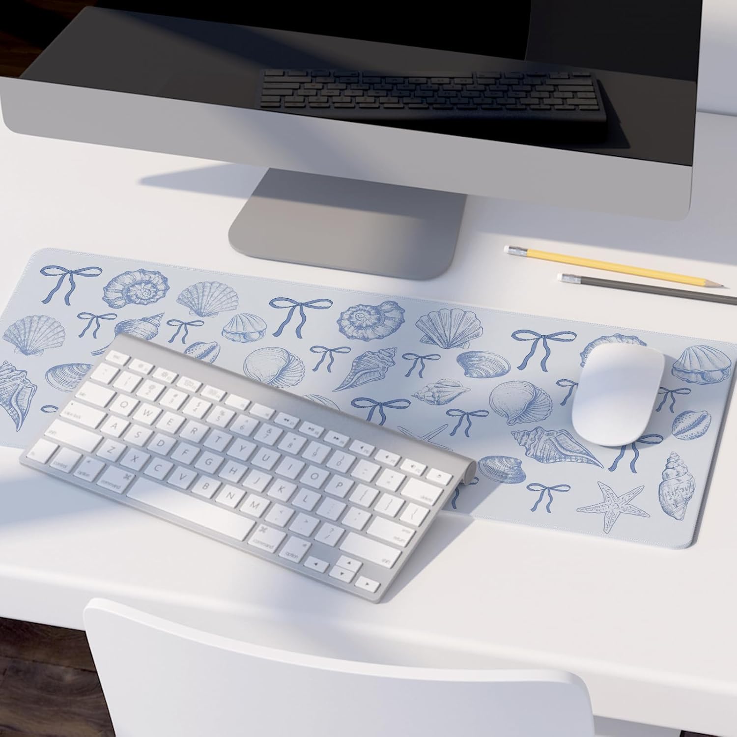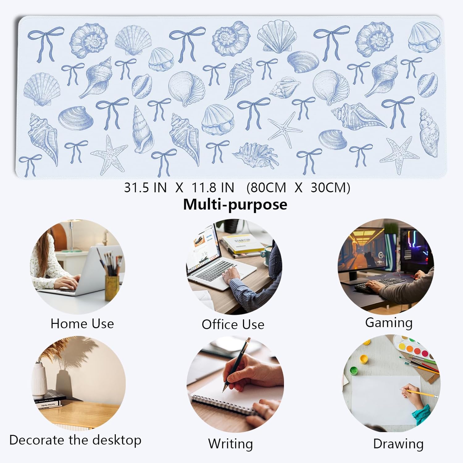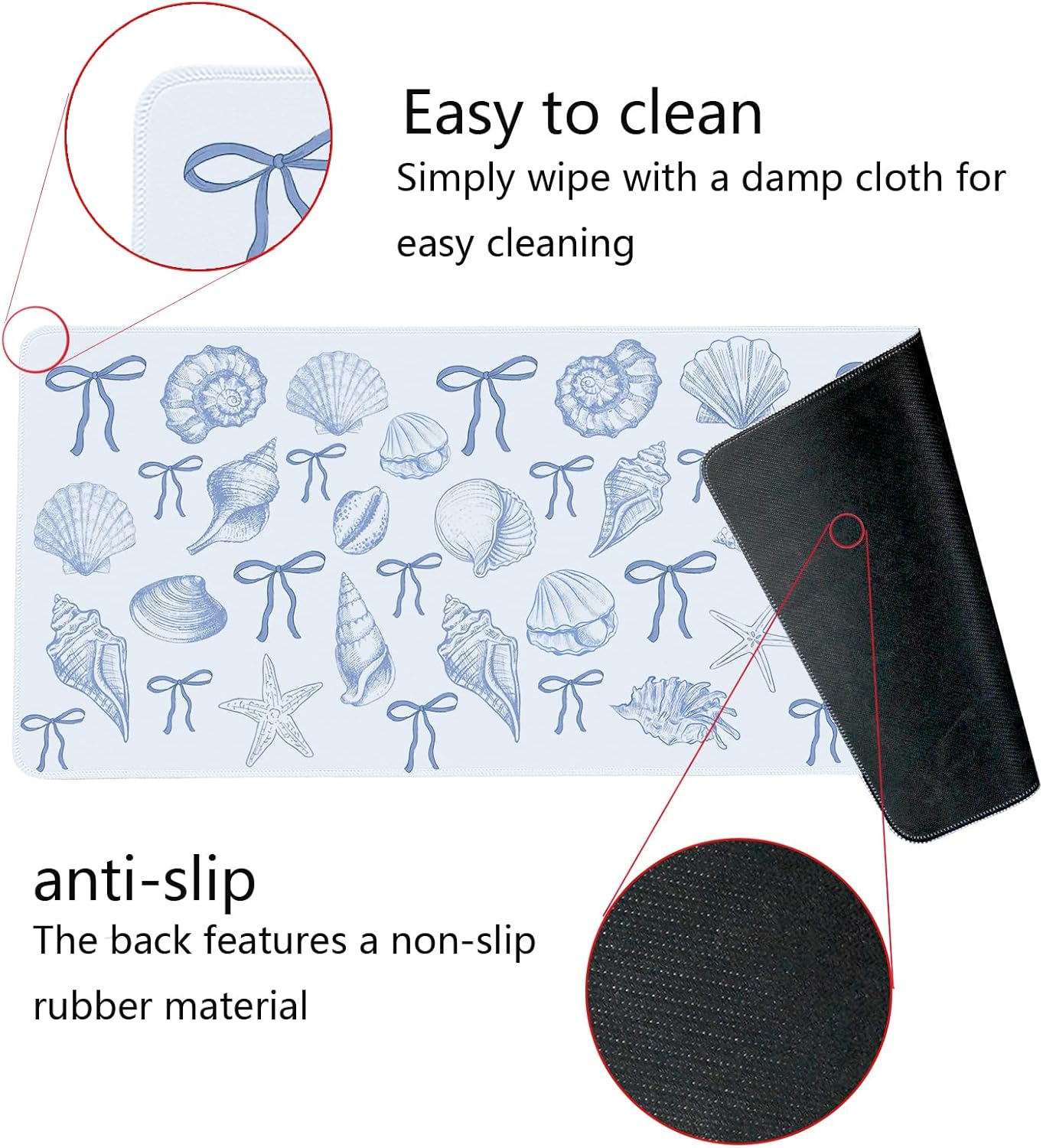 - 【Stylish appearance Designs】We choose the beautiful and fashionable blue and white seashell bow pattern, and use excellent printing technology to ensure bright colors. This is a great decoration for your home office desk and dorm table mat, which can add some personality to your workplace and home.