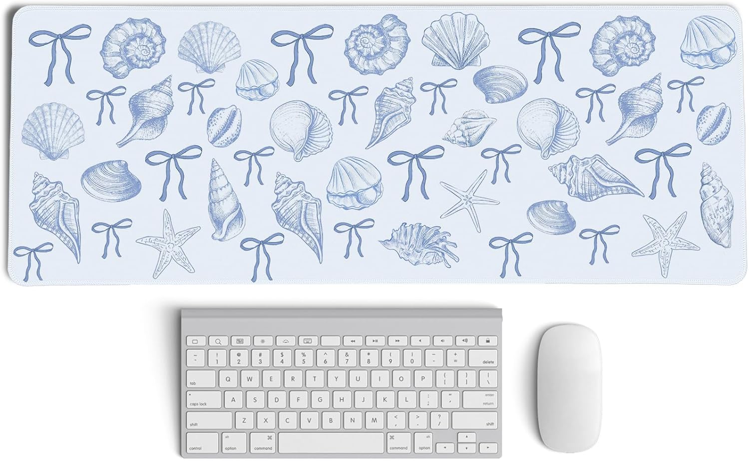 Blue and White Seashell Bow Mouse Pad,Coastal Beach Mouse Pad,XL Large Ocean Beach Seashell Desk Mat,Girly Vintage Summer Beachy Gaming Pads,Girly Summer Desktop Decor Art,31.5x11.8In