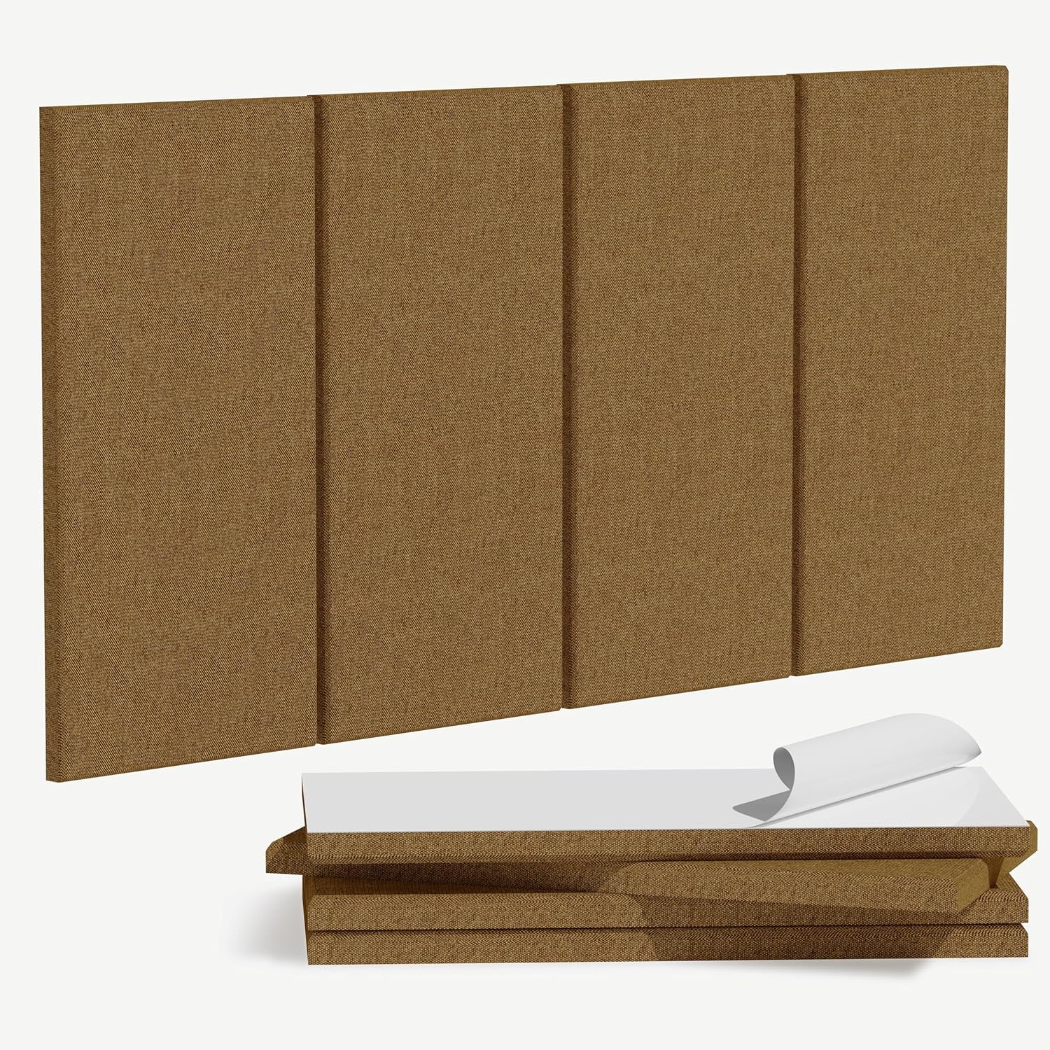 4PCS Acoustic Panels, 24"x12" Fabric Acoustic Panels for Walls, Self-Adhesive Sound Absorbing Panels for Home, Office, Studios (Camel Hazel)