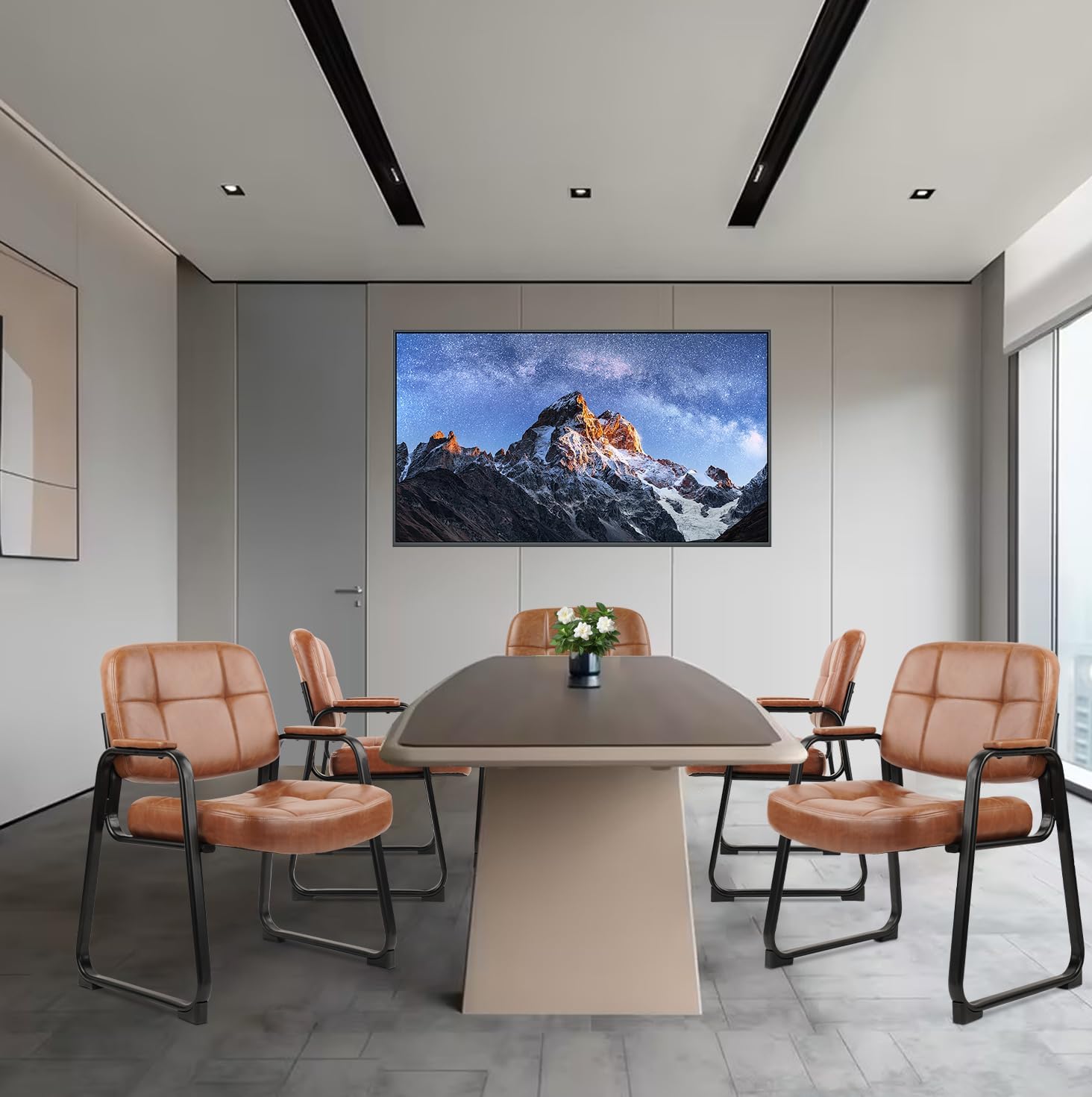 CLATINA Big & Tall 500 lbs Waiting Room Chairs with Padded Armrests and Sled Base, Leather Stationary No Wheels Office Guest Chair for Reception Lobby Home and Meeting Conference, Brown (8 Pack)