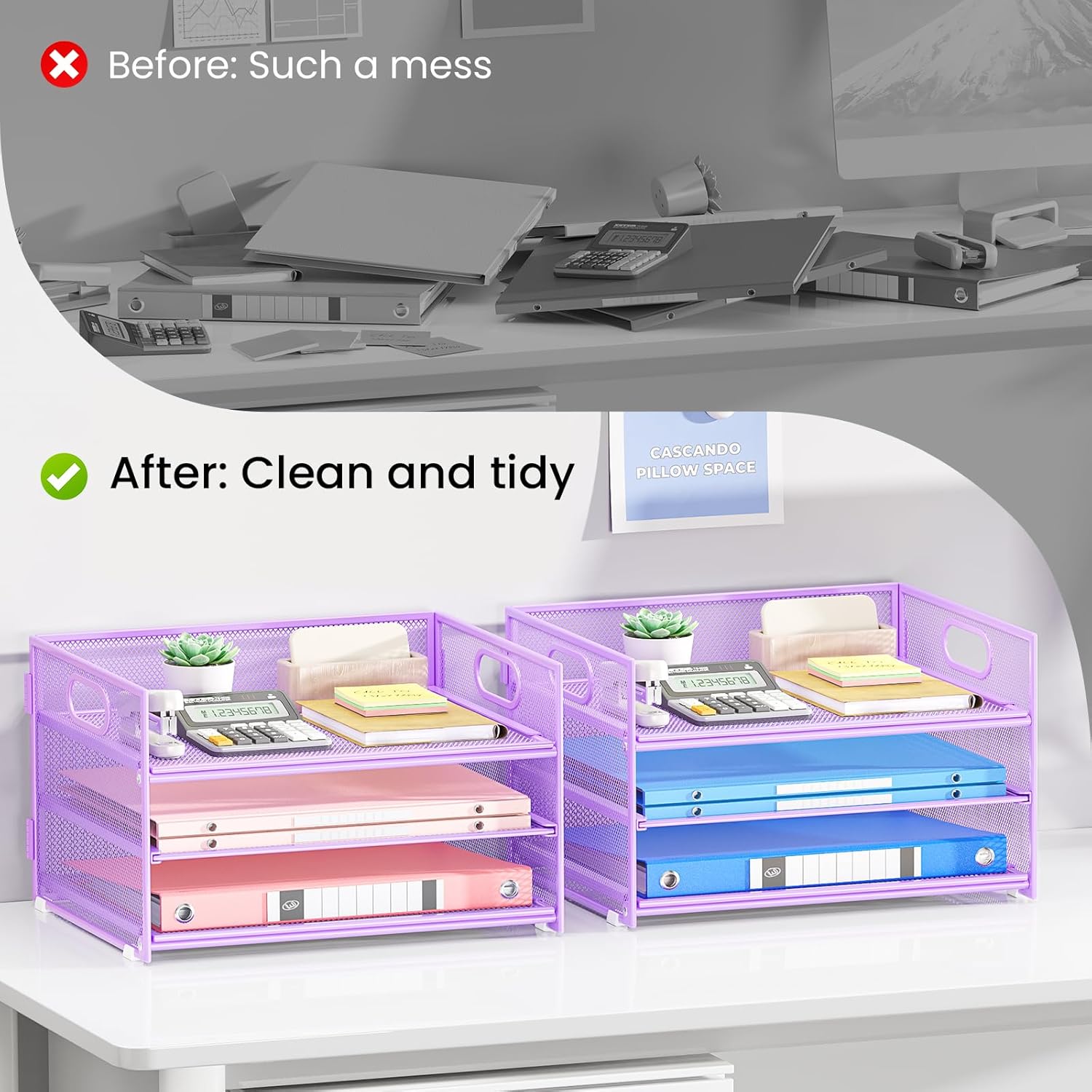 - Paper Organizer Function and Usage: The mesh desktop file organizer can hold various items including paper, folders, books, bills, notebooks, etc. The open design enables quick identification and access to contents, helping to declutter and organize the desk