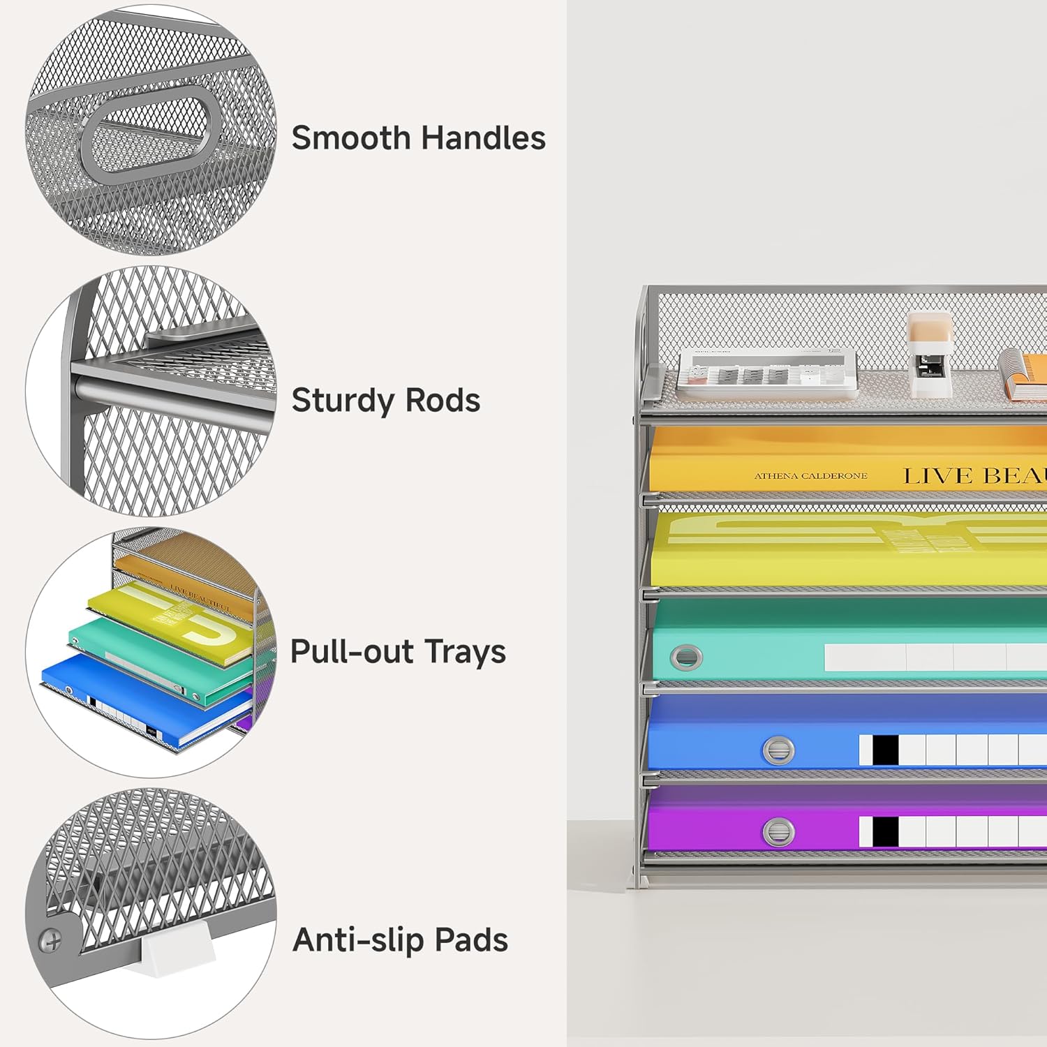 - 【EFFICIENT DESK ORGANIZER】Keep your desk tidy and clutter-free with our 6-Tier Paper Organizer with Handle. This file organizer provides ample space for sorting and storing papers, letters, documents, folders, books, magzines, staplers, caculators and sticky notes.