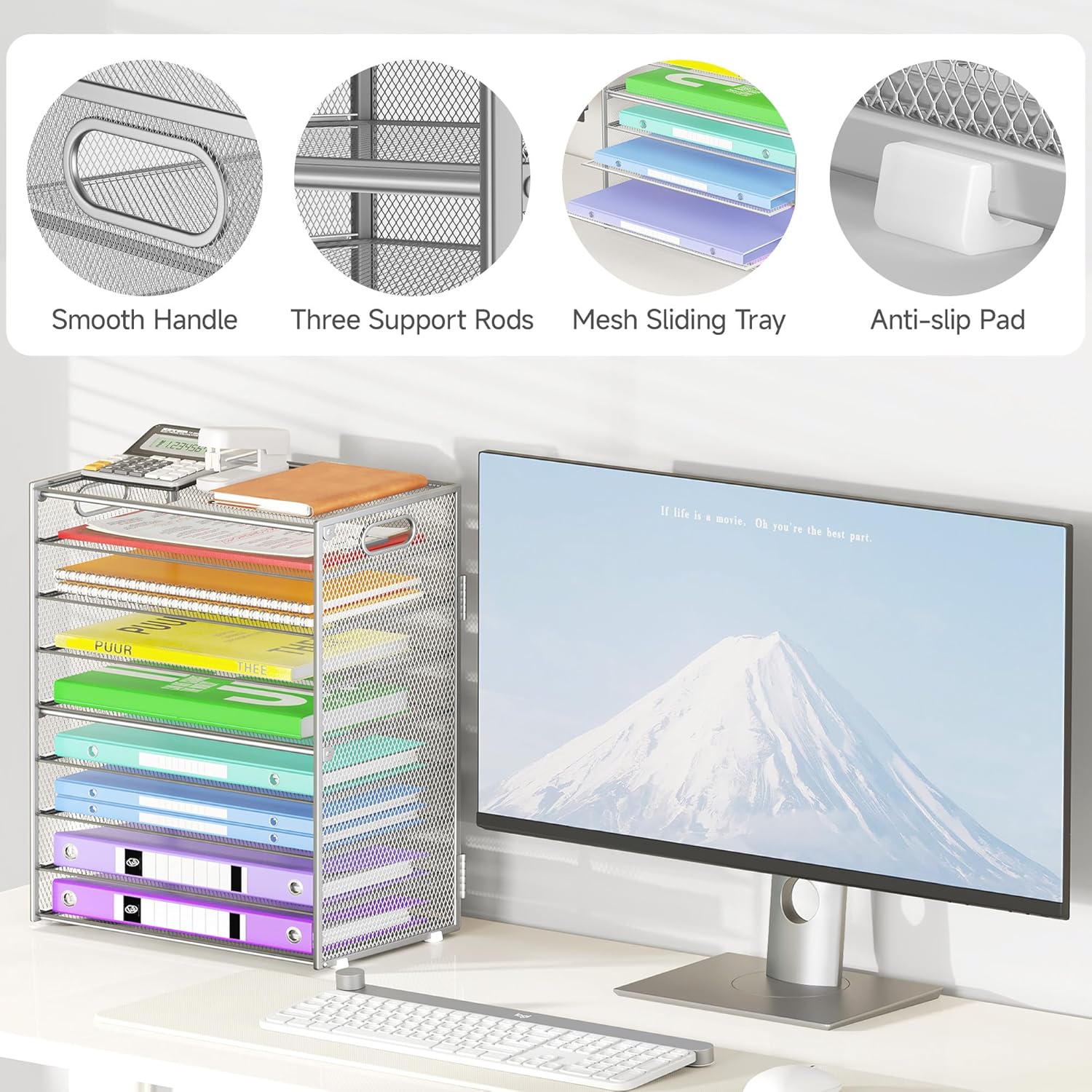 - 【EFFICIENT DESK ORGANIZER】This document organizer features sliding trays for easy access to your documents. Our desktop organizer comes with anti-slip feet, ensuring that it stays in place on your desk. It's also easy to move the file folder organizer with smooth handles.