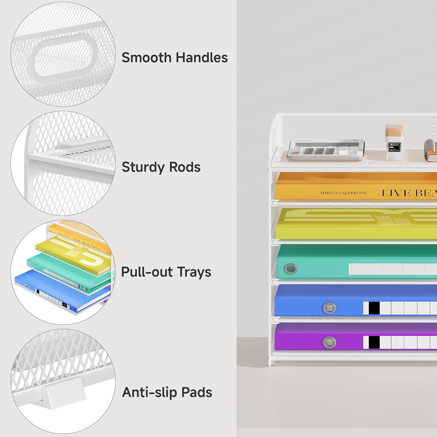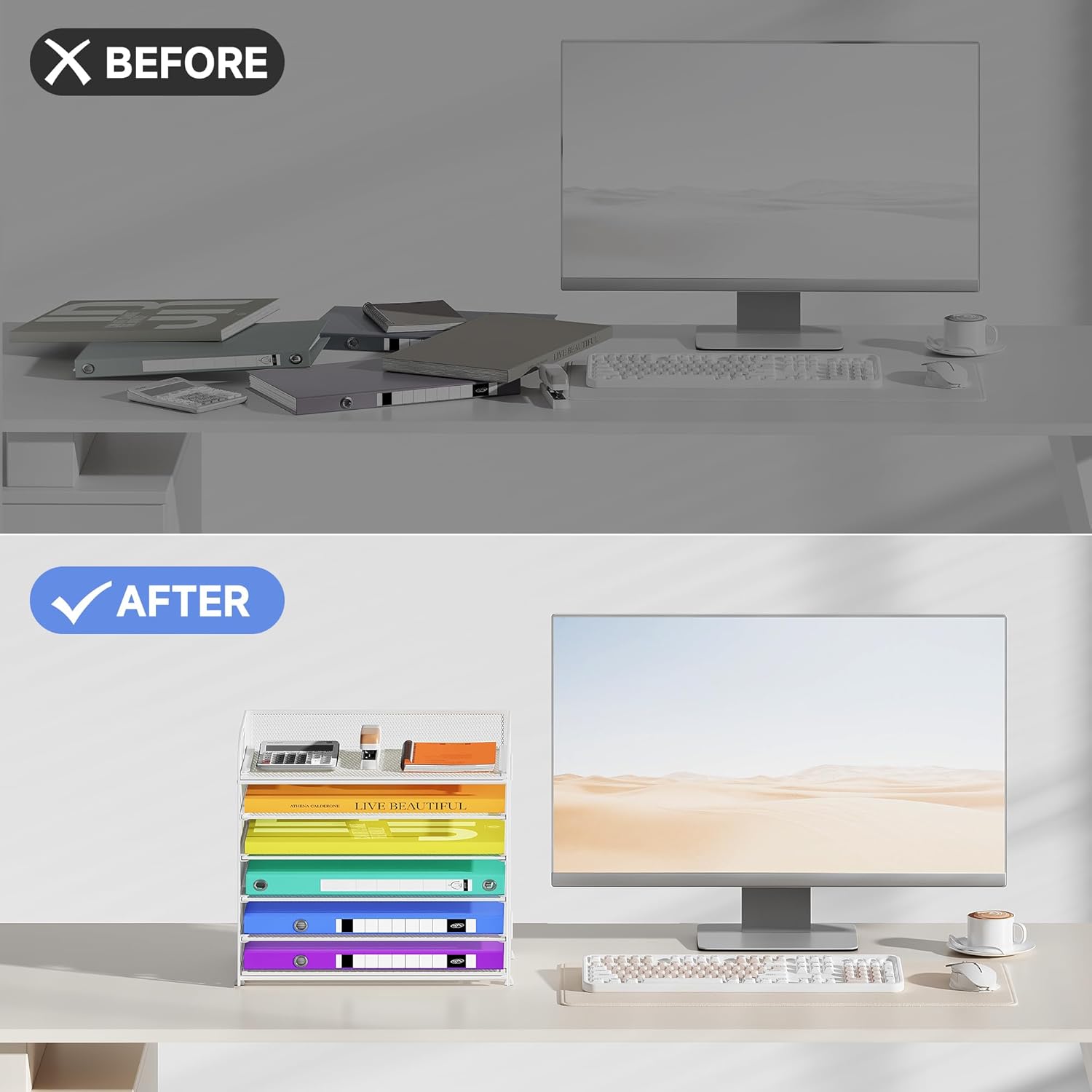 - 【EFFICIENT DESK ORGANIZER】Keep your desk tidy and clutter-free with our 6-Tier Paper Organizer with Handle. This file organizer provides ample space for sorting and storing papers, letters, documents, folders, books, magzines, staplers, caculators and sticky notes.