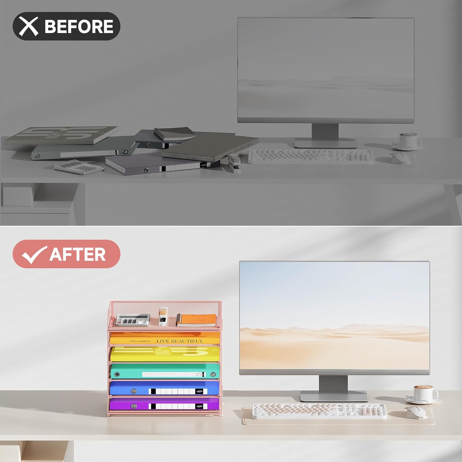 - 【EFFICIENT DESK ORGANIZER】Keep your desk tidy and clutter-free with our 6-Tier Paper Organizer with Handle. This file organizer provides ample space for sorting and storing papers, letters, documents, folders, books, magzines, staplers, caculators and sticky notes.