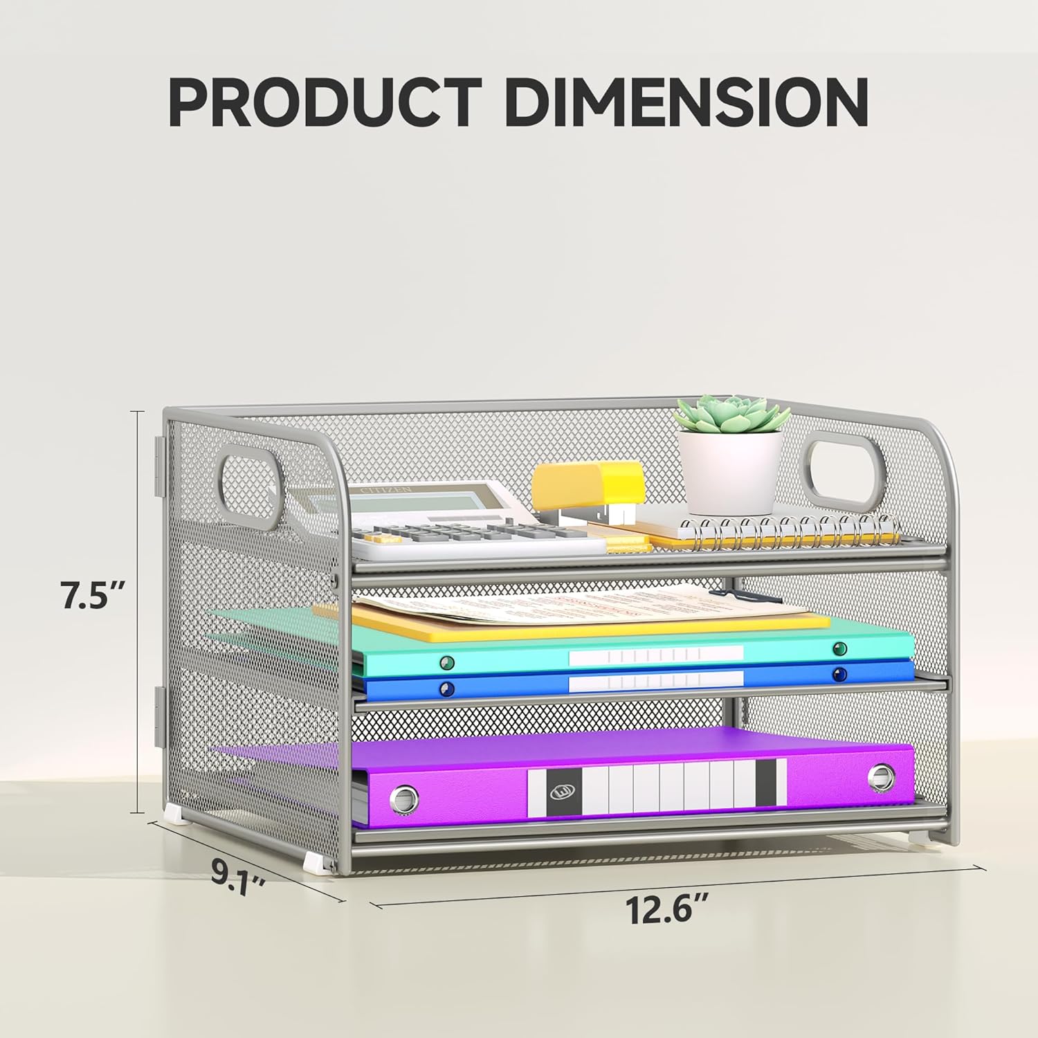 - 【EFFICIENT DESK ORGANIZER】Keep your desk tidy and clutter-free with our 3-Tier Paper Organizer with Handle. This file organizer provides ample space for sorting and storing papers, letters, documents, folders, books, magzines, staplers, caculators and sticky notes.
