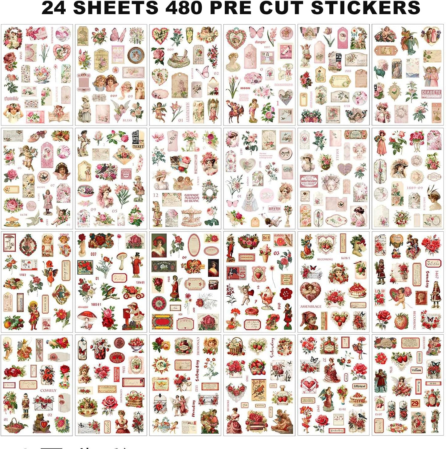 - This vintage scrapbook sticker sheet includes 24 pages and 480 different styles of high quality stickers, perfect for scrapbooking, journaling, planners and more!