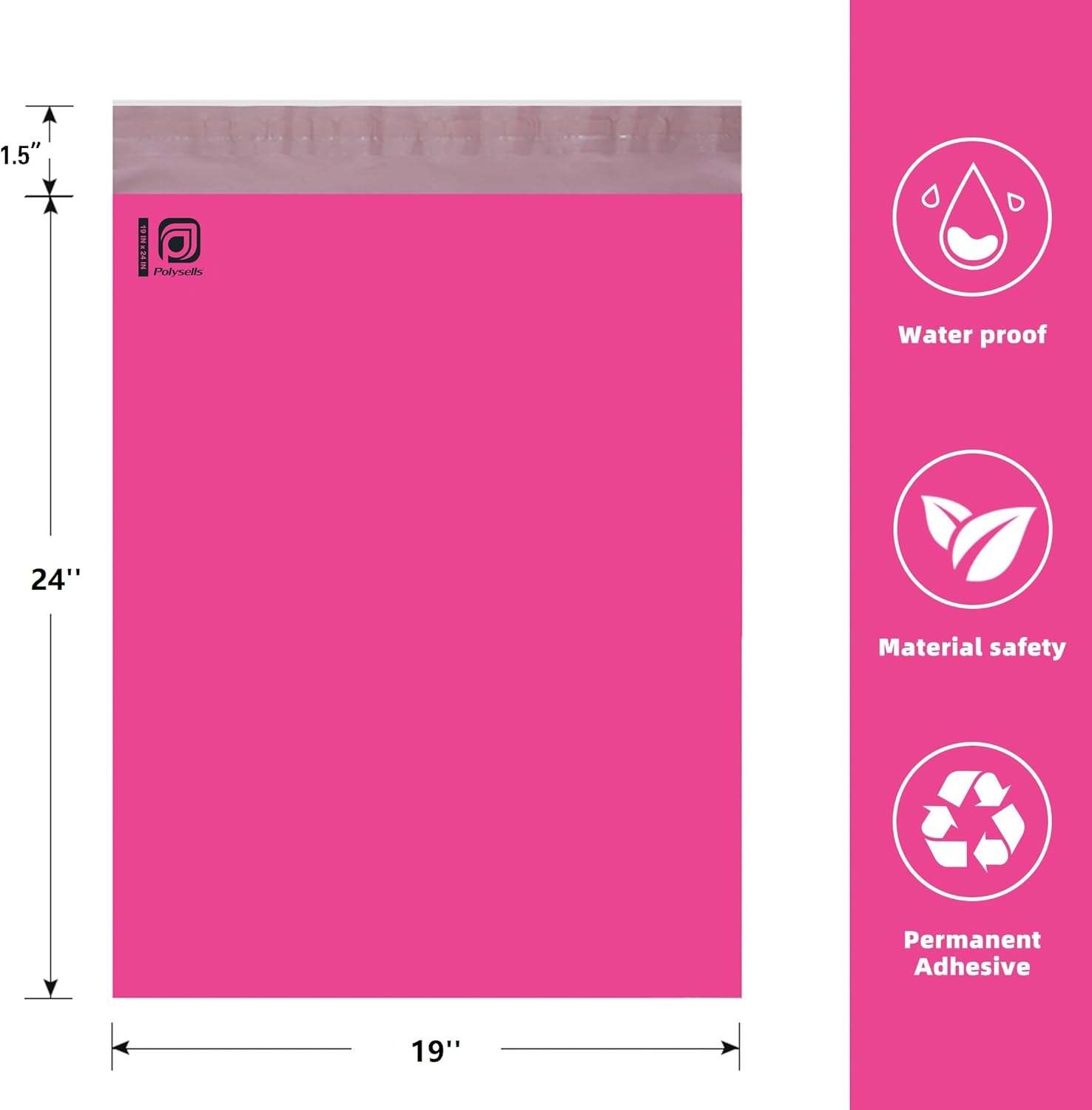 POLYSELLS 50 pcs 19x24 Inches Pink Poly Mailers Shipping Envelopes, Strong Adhesive Sealing, Waterproof, and Tear-resistant Postal Mailing Bags for Clothing, Books, and Accessories