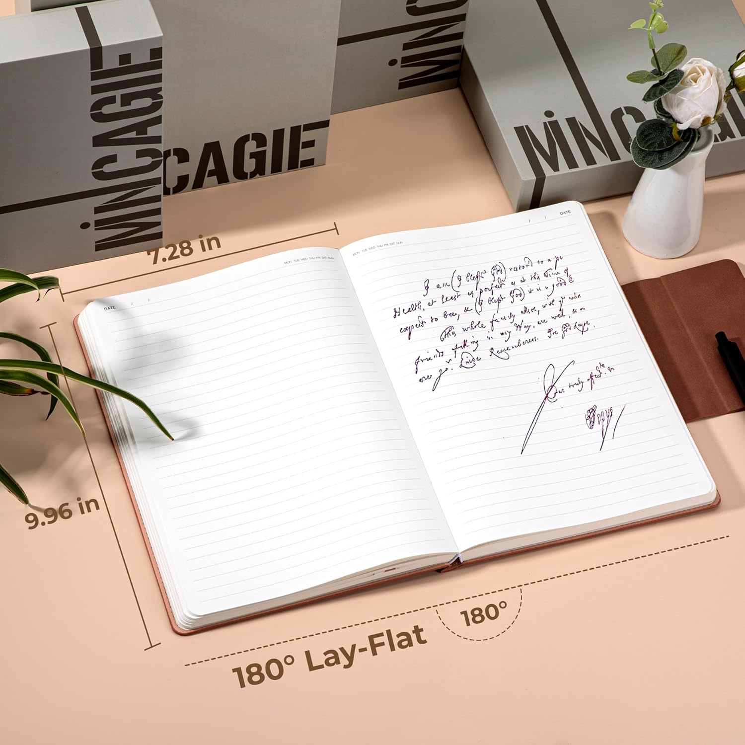 - Sleek Functionality: A magnetic square closure replaces traditional straps, ensuring secure closure and doubling as a hidden pen loop. Perfect for on-the-go use with its A5 journal for men and 180° flat-lay design.