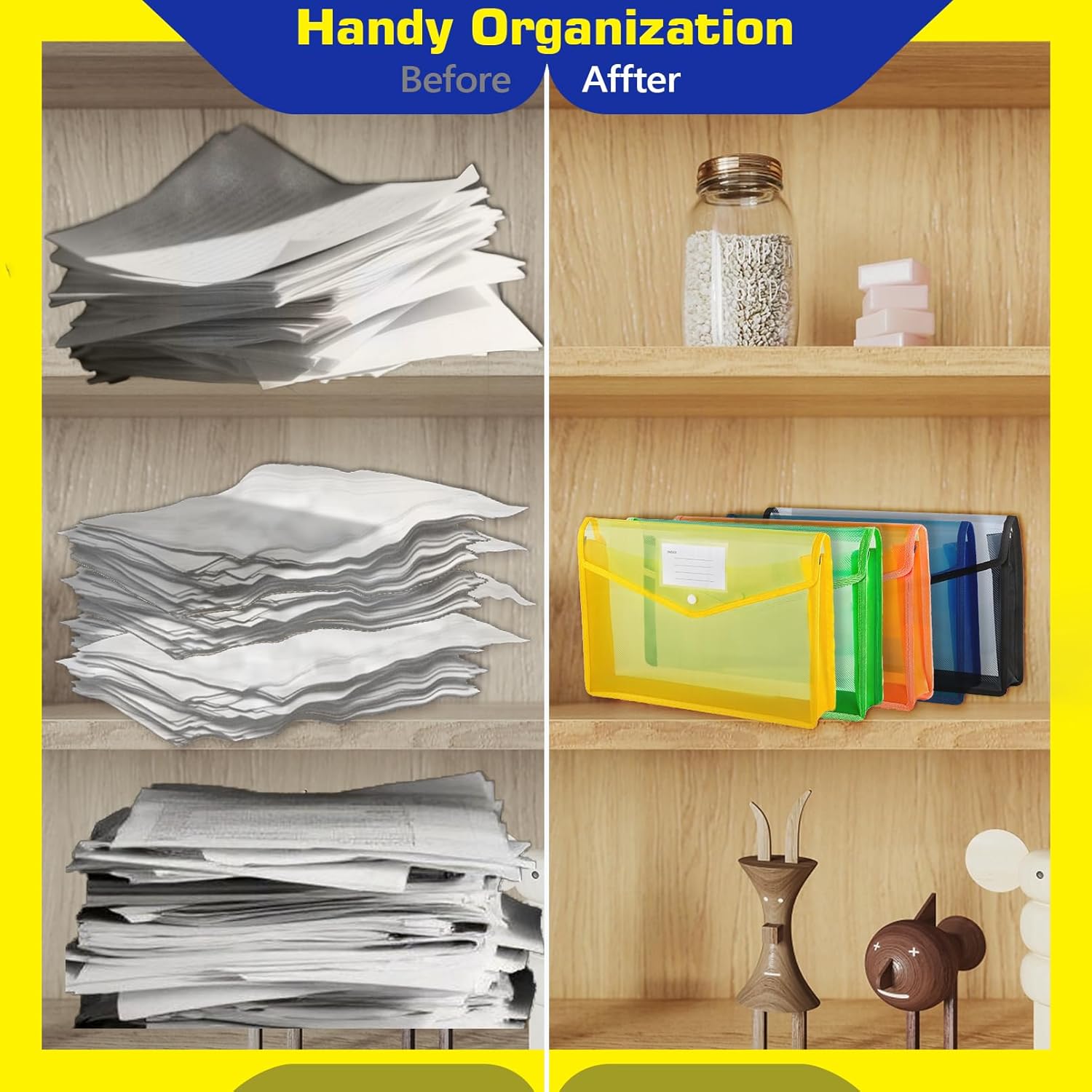 - Package Content: You will receive 5 pack expanding file folders in different colors: blue, yellow, green, black, and orange. Each A4 folder features a semi-transparent design, making it easy to organize and distinguish various documents.