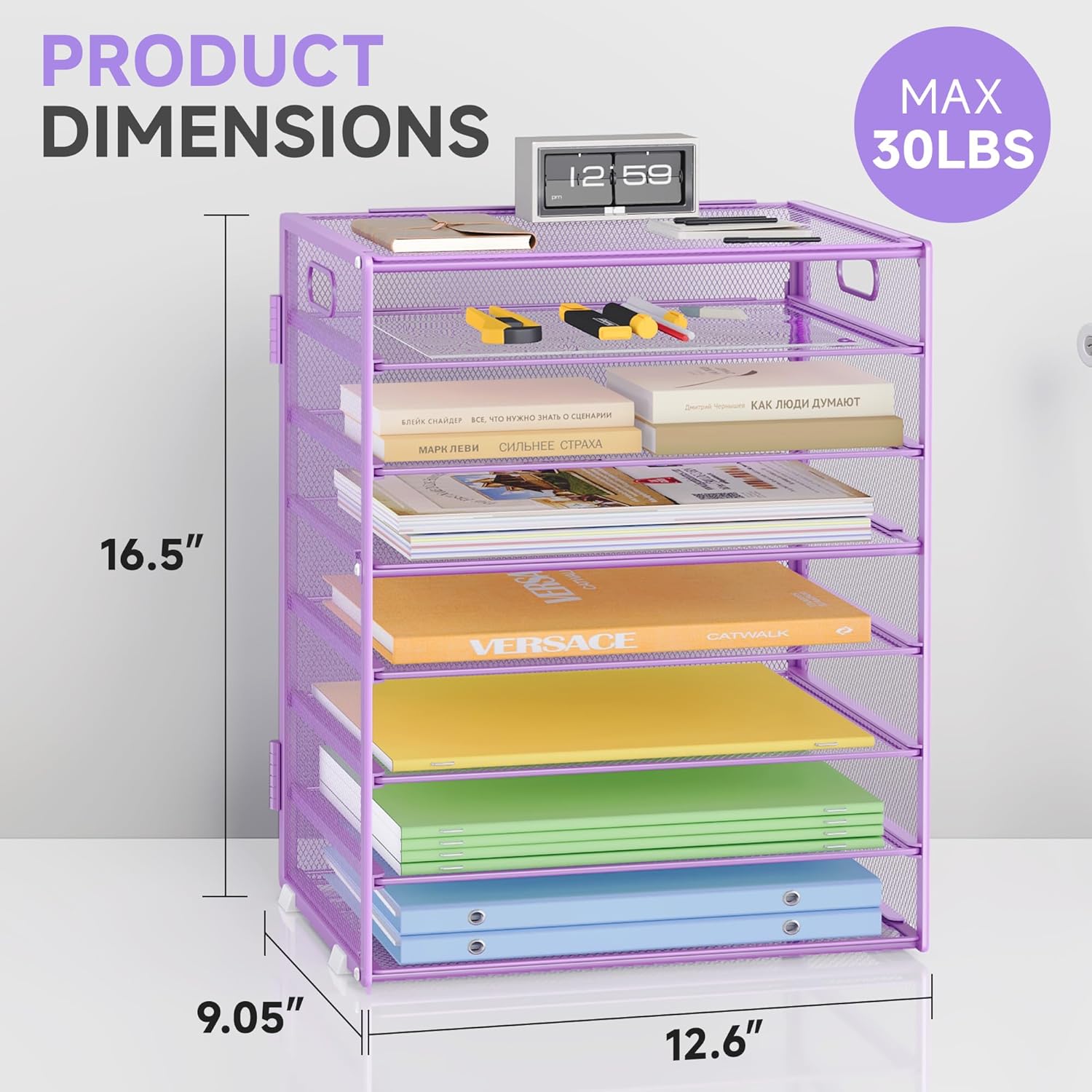 Paper Organizer with Handle Metal Mesh File Sorter for Desk Organizers Paper Letter Tray Desktop Document Sorter for Office or School 2 Pack 8 Tier Purple Desk Storage