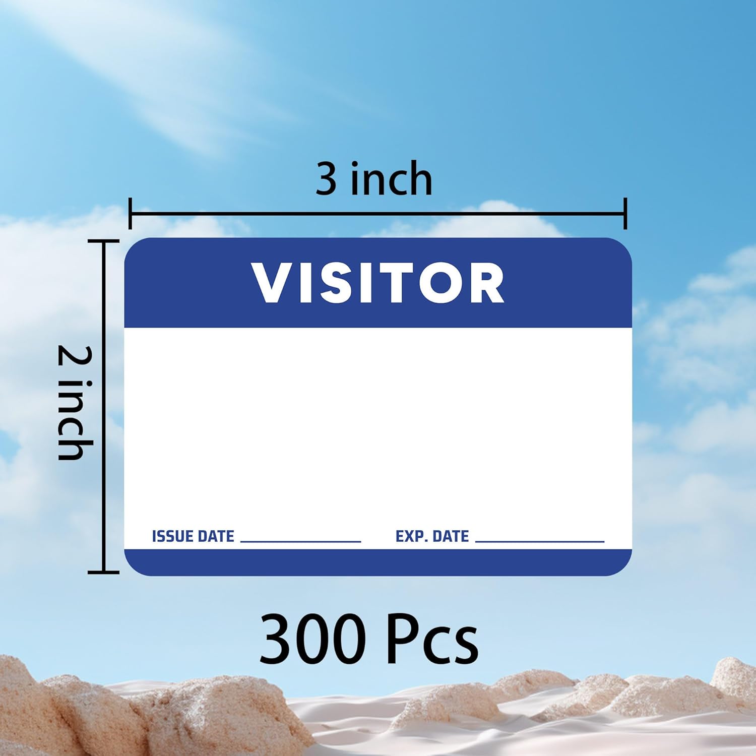 Visitor Pass Stickers – 300 Writable Name Tag Labels, 2 x 3 Inch, Self-Adhesive Identification Badges for Office, School, Events (300Pcs-Fluorescent Blue)